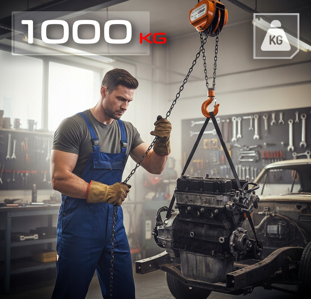 ✔️ Ефективне підйом вантажів - редуктор розроблений таким чином, що з мінімальними зусиллями оператора можна ефективно піднімати вантажі вагою до 1000 кг. Завдяки цьому навіть одна людина може безпечно та ефективно керувати пристроєм.