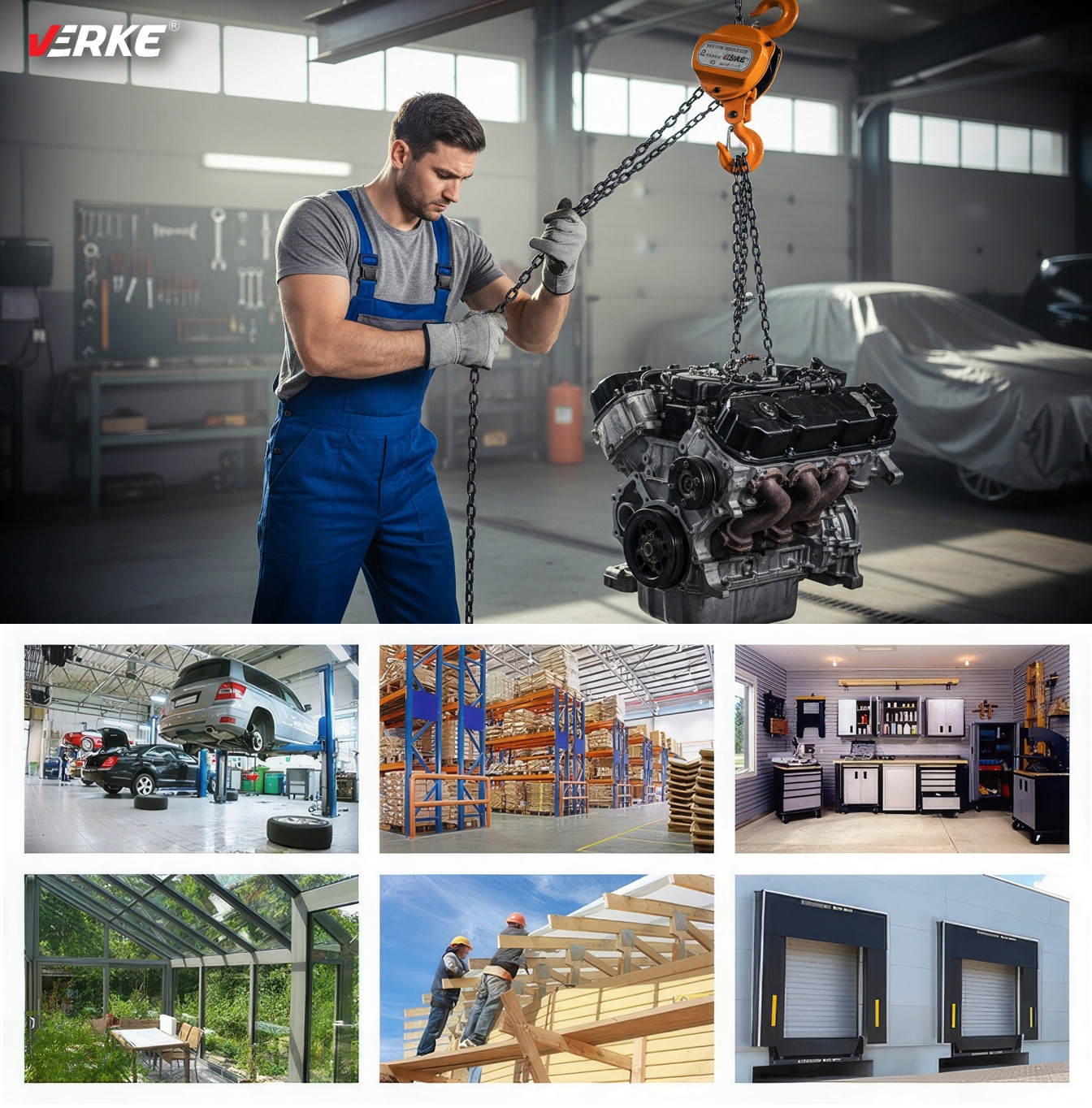 Лебідку можна використовувати в автомобільних майстернях (наприклад, для зняття двигунів), на фермах, на складах, на будівельних майданчиках, на верфях і скрізь, де потрібно безпечно та ефективно підняти важкий елемент.