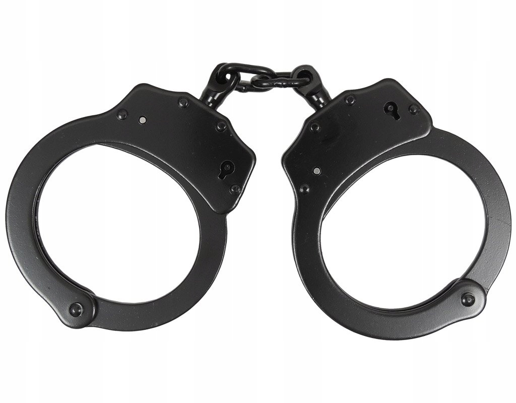 Сталеві наручники закріплені подвійним ланцюгом, що замикається за допомогою механізму подвійної собачки, який запобігає надмірному затягуванню.