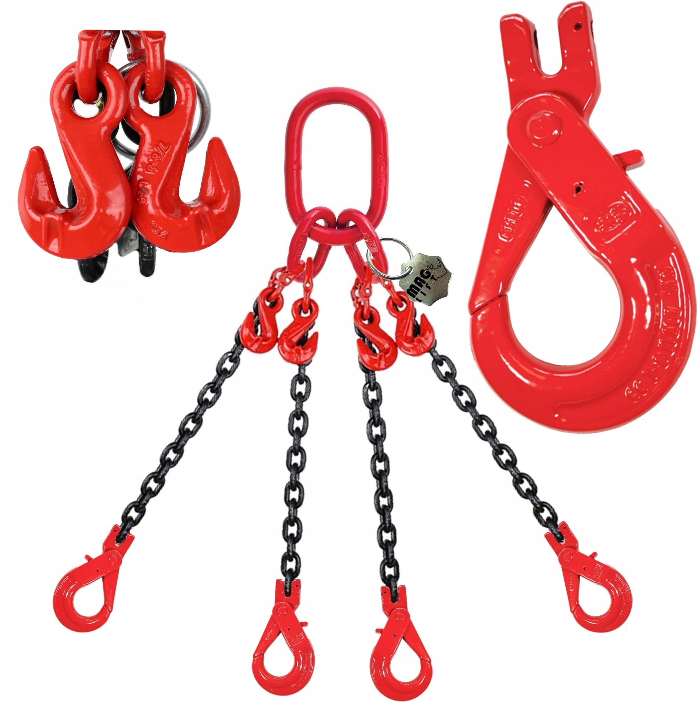 ЛАНЦЮГ НА 4 НОГАХ ОДИНОЧНИЙ + УКОРОЧУЮЧІ ГАКИ з БЕЗПЕЧНИМИ ГАЧКАМИ з автоматичним замком на засув