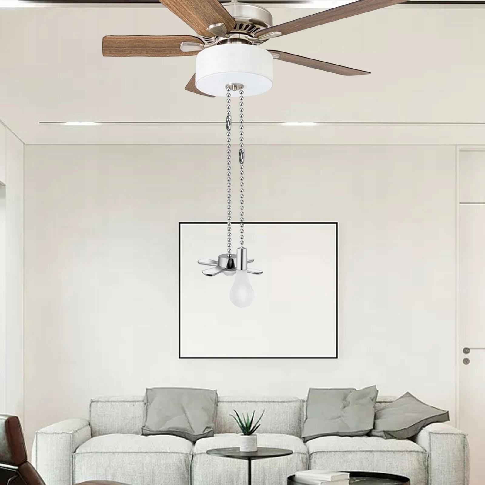 Ланцюги для стельового вентилятора: довжина ланцюжка вентилятора становить 31 см/12,20 дюйма, легка, компактна конструкція, шнур стельового вентилятора подовжує структуру, що допомагає легко тягнути ланцюг.