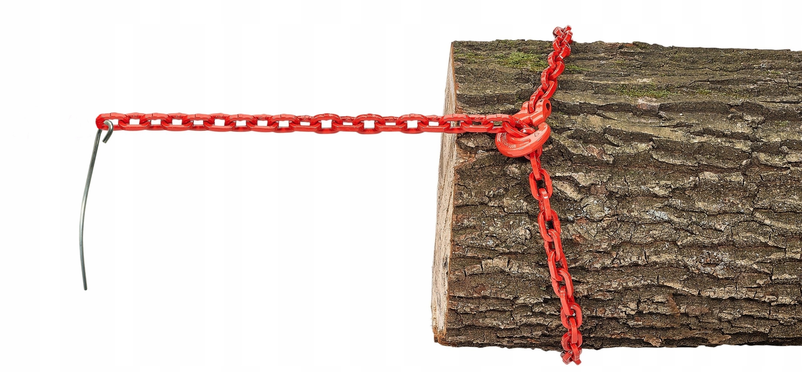 ЗАСТОСУВАННЯ: Ланцюг пристосований для трелювання лісу та інших лісогосподарських робіт, сільськогосподарських працює. Ланцюжок закінчується шпилькою з одного боку та ковзним гачком з іншого боку. Адаптована форма гака забезпечує надійне зачеплення з ланцюгом без можливості самовід’єднання та легке ковзання по квадратному ланцюгу при затисканні на дерев’яній колоді.