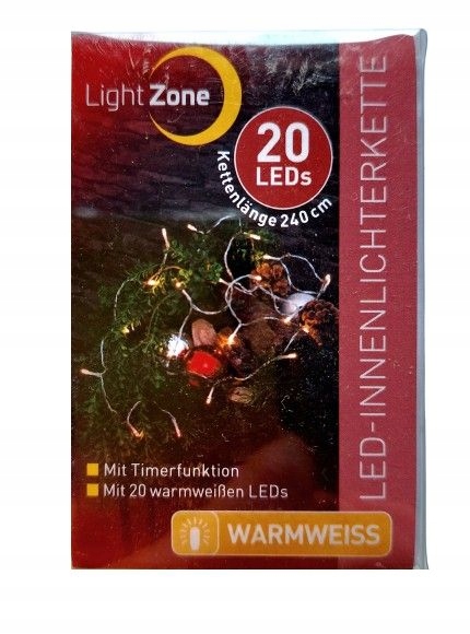 Ланцюжок світлодіодних ламп 20шт 2,4м 3хАА таймер ТЕПЛИЙ БІЛИЙ