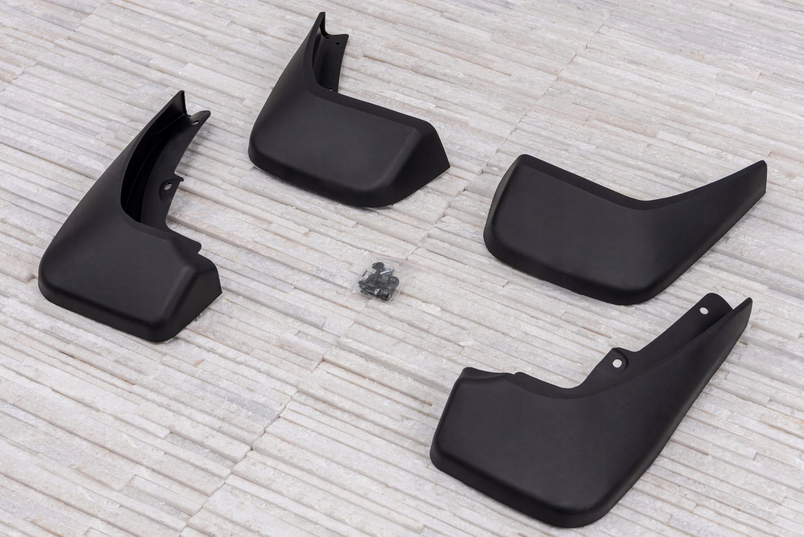 Chlaps розроблені для ідеального поєднання з лінією кузова автомобіля. Вони ефективно захищають сторони автомобіля від каменів з -під коліс і обмежують кількість бризок води, яка вдарила машини по спині. Вони виготовлені з високоякісного пластикового пластику, забезпечуючи адекватну гнучкість, довговічність та естетичний вигляд продукту.