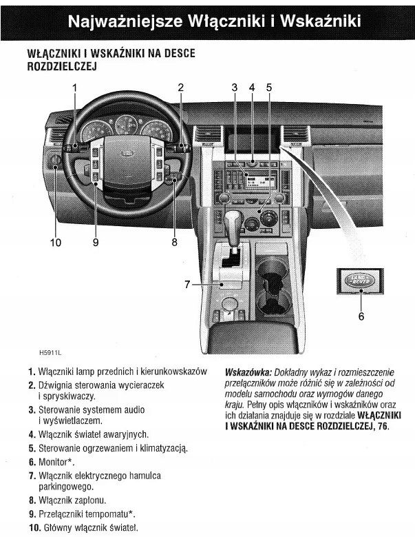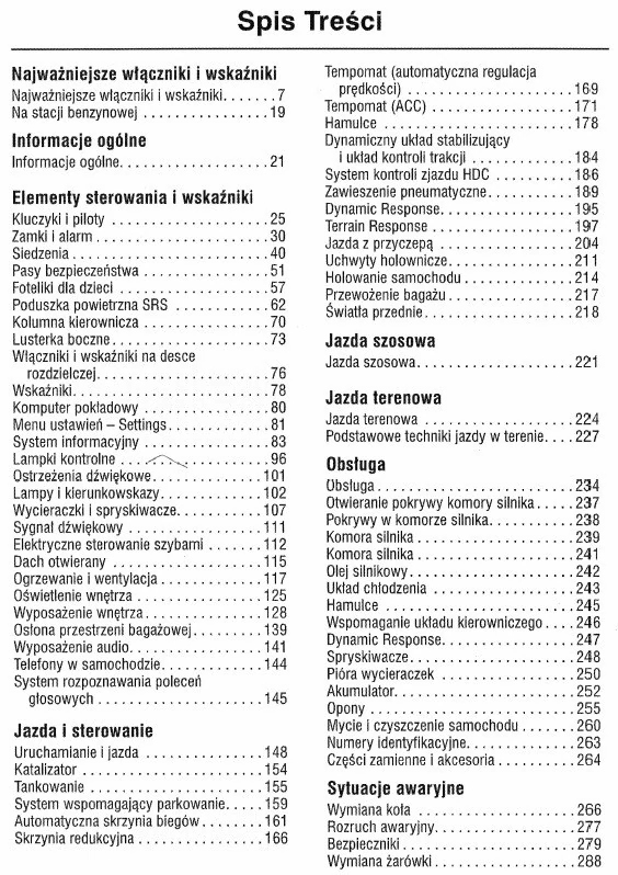 Посібник власника Land Rover містить усі версії обладнання та корисну інформацію про те, як ефективно та безпечно користуватися транспортним засобом, наприклад. - Індикатори, індикаторні світильники, відкриття та закриття - освітлення та видимість, сидіння, відсіки для зберігання, опалення, вентиляція, кондиціонер - керування автомобілем, підказки, технічне обслуговування автомобіля - рівні рідини, перевірка та переповнення, аварійні операції, заміна колеса, запобіжники, заміну лампочок - технічні дані ... та багато інших речей, які дають відчуття безпеки та комфорту для мандрівників. Польський закон зобов'язує продавця прикріпити посібник власника автомобіля польською мовою. Посібник користувача автомобіля новий і польський.