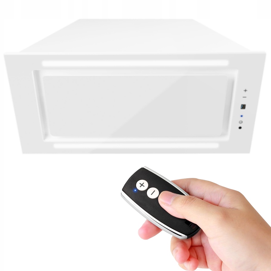 Флагманський продукт нашої компанії. Хіт серед вбудованих витяжок, тепер у ще вищому стандарті з додатковими вдосконаленнями. Одна з небагатьох витяжок на ринку, оснащена довгою подвійною світлодіодною стрічкою, розташованою симетрично на відносно невеликій поверхні витяжки. Він забезпечує відмінне освітлення на кухні, тому ідеально підходить для будинків, де це одна з улюблених кімнат. У порівнянні з попередником виглядає ще більш естетично. Повністю покритий одним кольором, оздоблений у нижній частині елегантним і простим у догляді загартованим склом. У витяжці використовуються ультрасучасні механізми, такі як ефективна периферійна система поглинання та сенсорне керування з радіопультом у комплекті. На вибір є два верхніх кольори: білий і чорний. Витяжка виготовлена з найкращих матеріалів польського та європейського виробництва.