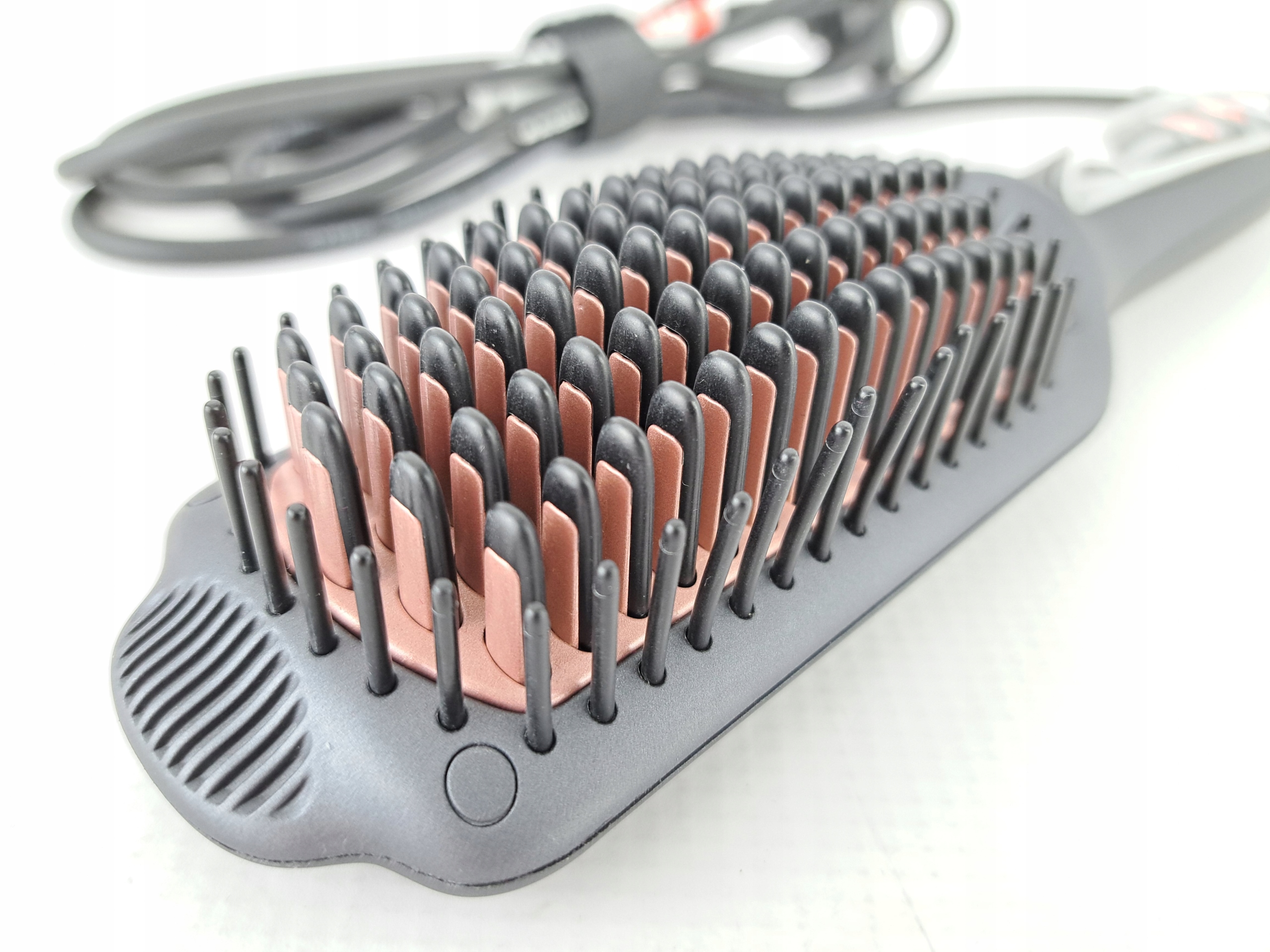 - Гладка ковзаюча керамічна щетина гарантує, що вона легко ковзає по волоссю з меншою ламкістю. Кінчики щетини залишаються холодними, щоб запобігти тепловому пошкодженню волосяних фолікулів і захистити шкіру голови