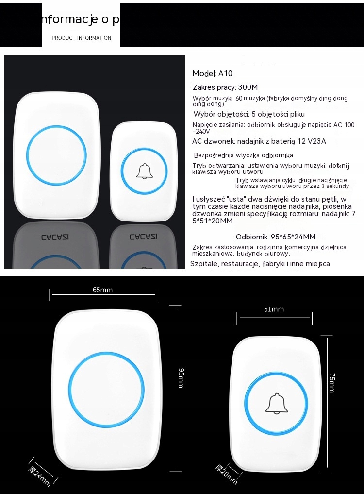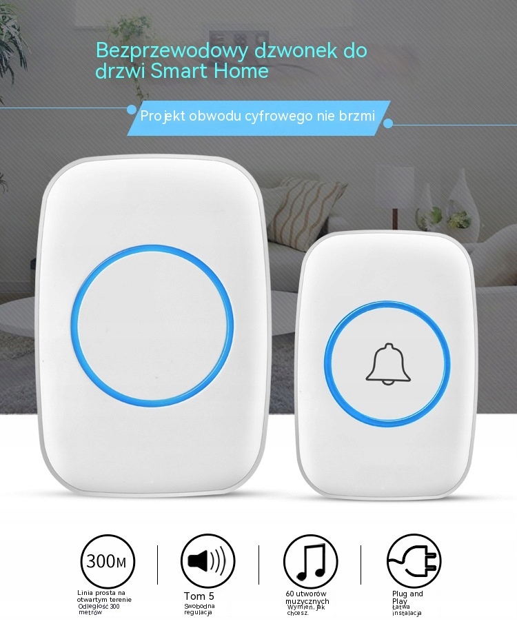 LAOLUCKY БЕЗДРОТОВИЙ ВОДОСТІЙКИЙ ДВЕРНИЙ ДЗВОНОК 300М + АКУМУЛЯТОР