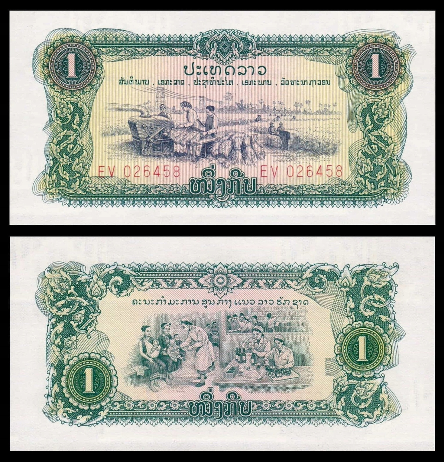 Красива банкнота в 1 кіп з Лаосу - 1968. (P-19Aa) в абсолютно ідеальному стані банку I (UNC).