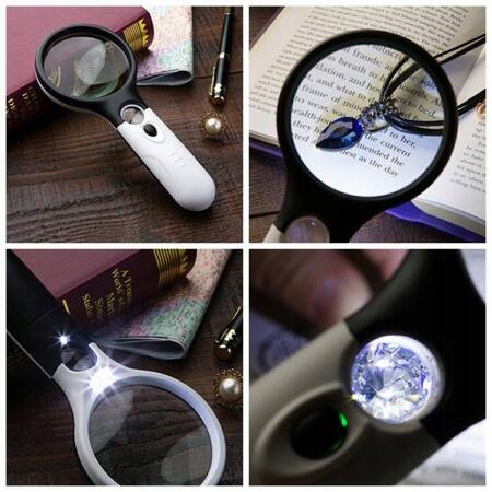 - Освітлене збільшувальне світло, присвячене людям, які мають проблеми з читанням невеликого друку в документах, журналах, книгах, на мітках продуктів тощо.