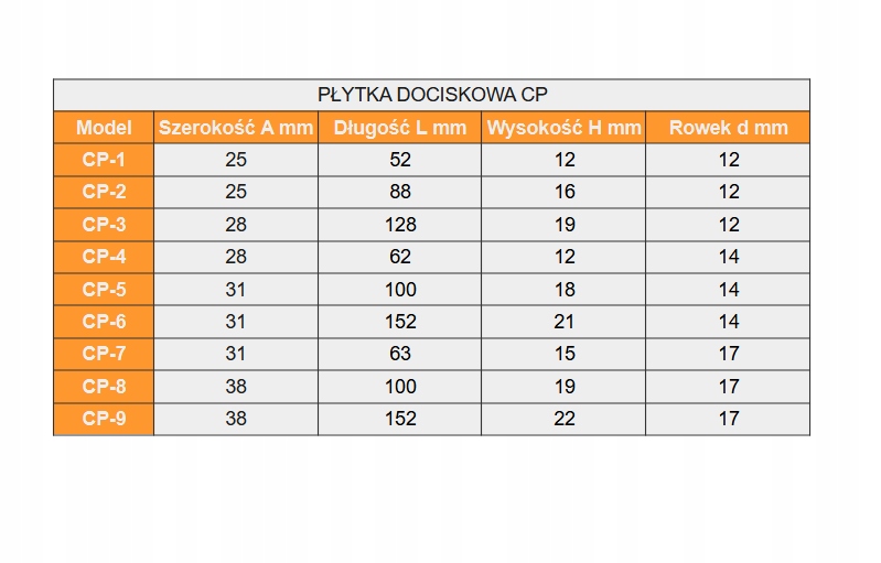 Пластина пластини PAW 12x52mm M8 M10 M12 CP-1