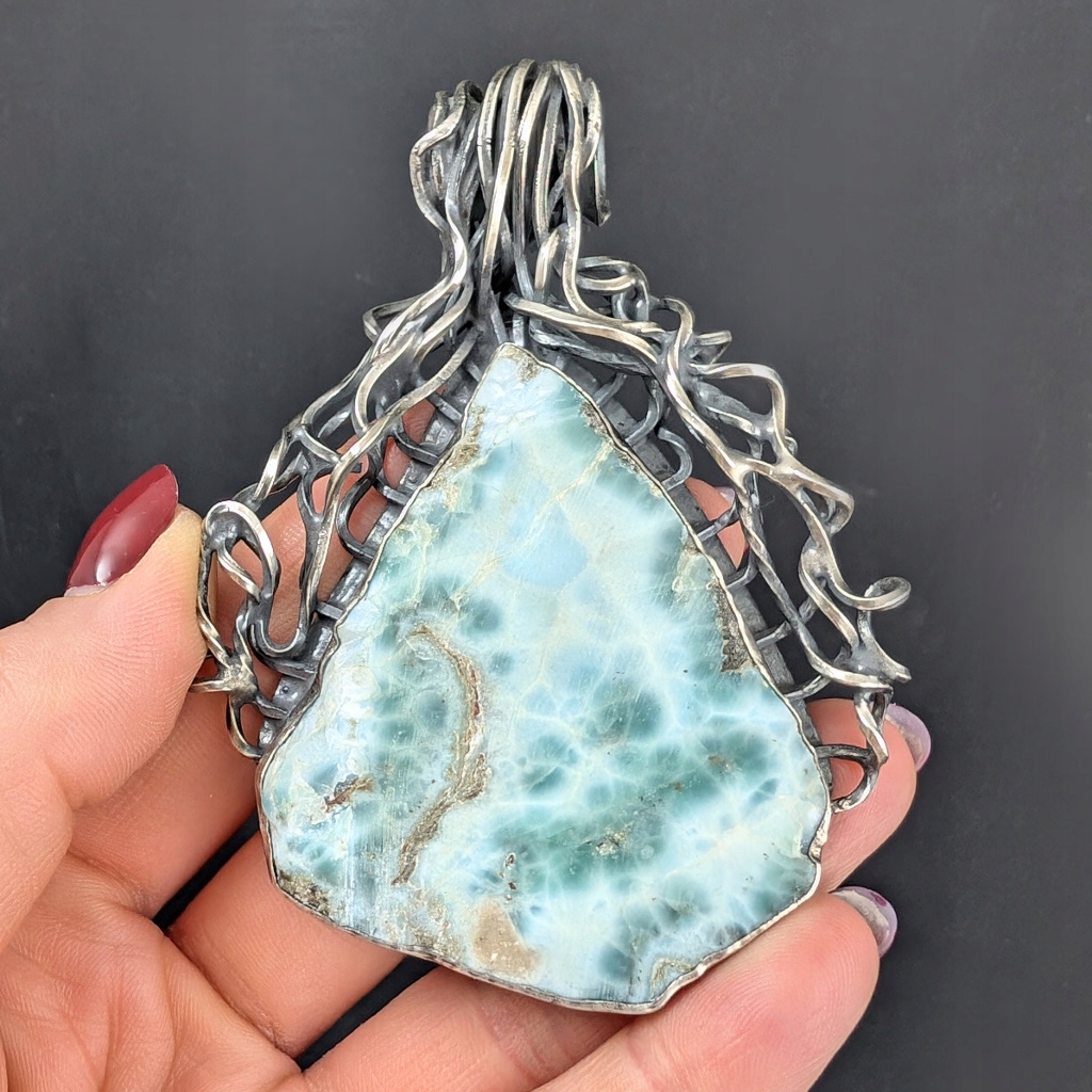 LARIMAR OGROMNY WISIOR SREBRO 925 SREBRNY NEORES BŁĘKITNY OKAZ DOMINIKANA