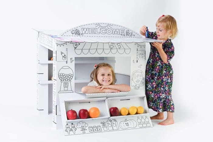 Найважливішою перевагою нашого магазину є його легкий монтаж і розбирання завдяки графічним інструкціям. Немає необхідності використовувати ножиці або клей, тому навіть найменші діти можуть спокійно насолоджуватися розвагою. Краї картону спеціально розроблені, щоб не загрожувати маленьким ручкам - немає ризику порізати шкіру.