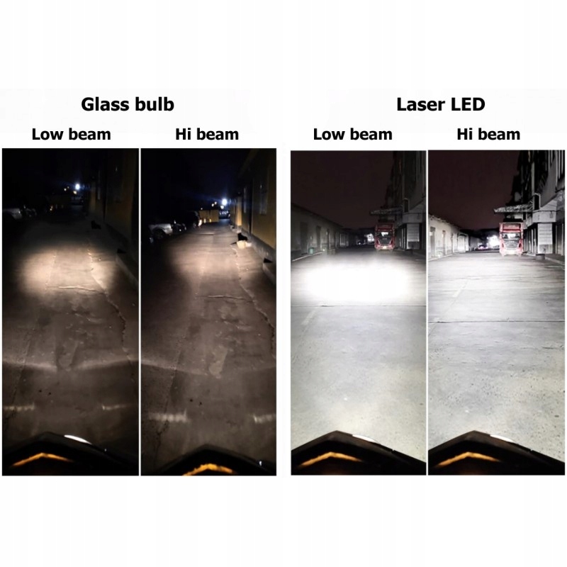 Новітні технології LED лазер. Світло спрямоване на дорогу, темних плям немає. Дорога рівномірно і сильно освітлюється завдяки спеціальній лінзі. Він не засліплює зустрічних водіїв, незважаючи на високу інтенсивність освітлення.
