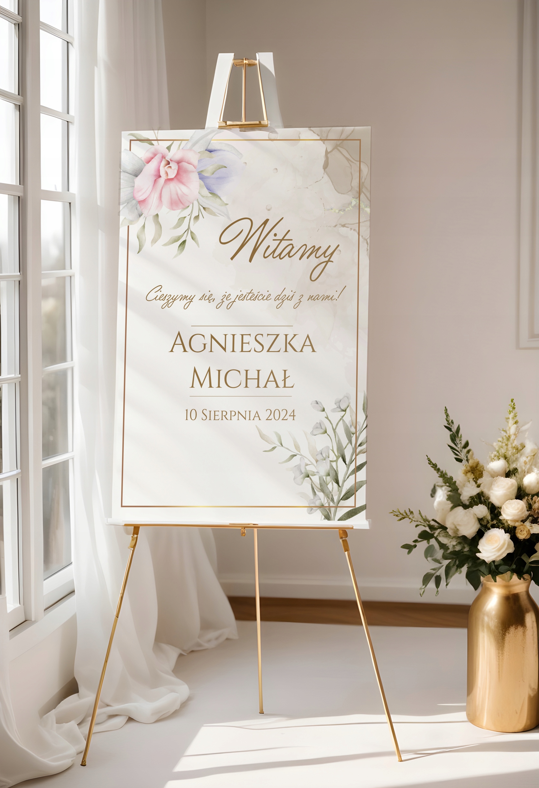 Ми представляємо вам елегантний та персоналізований вітальний плакат на весілля, який не вдосконалено додасть унікальну принадність вашої церемонії та вітає гостей.