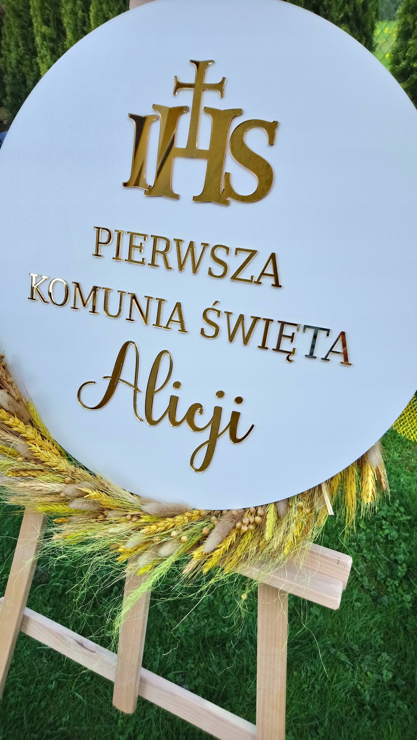 Ласкаво просимо табличку, перше святе Причастя, Ім'я, IHS, 50 см, Золоті написи