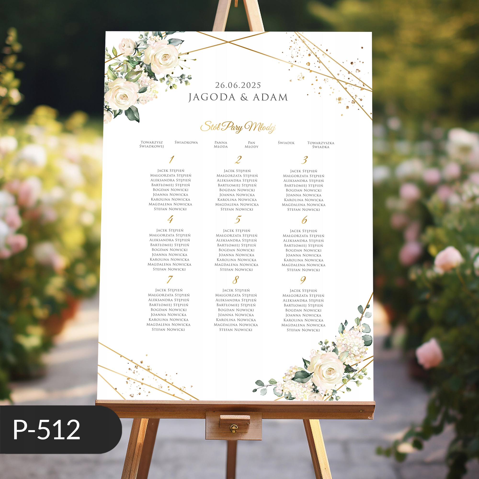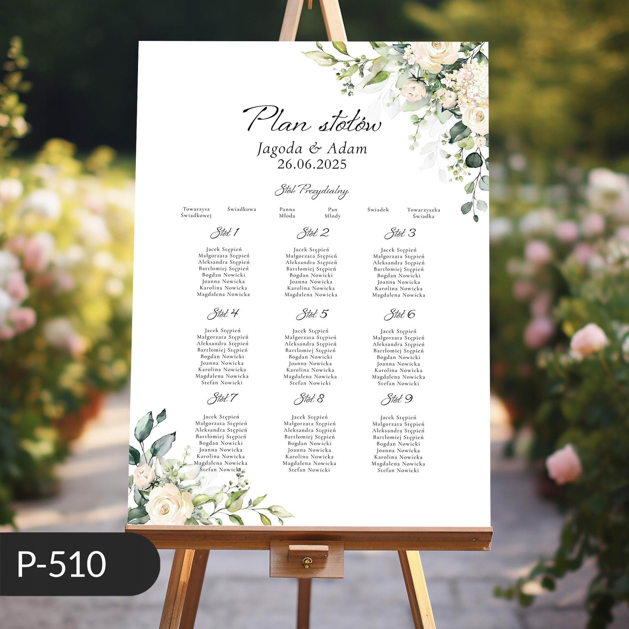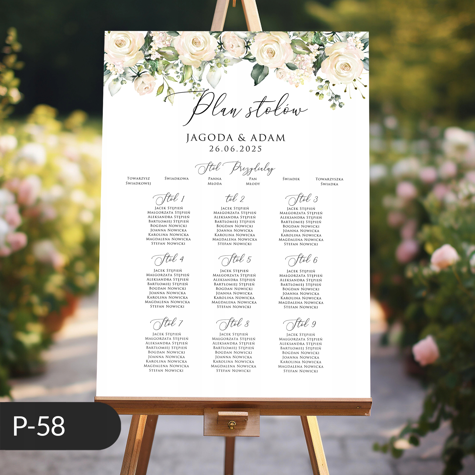 Ласкаво просимо весільний плакат, список столів, білі троянди та квіти 50x70