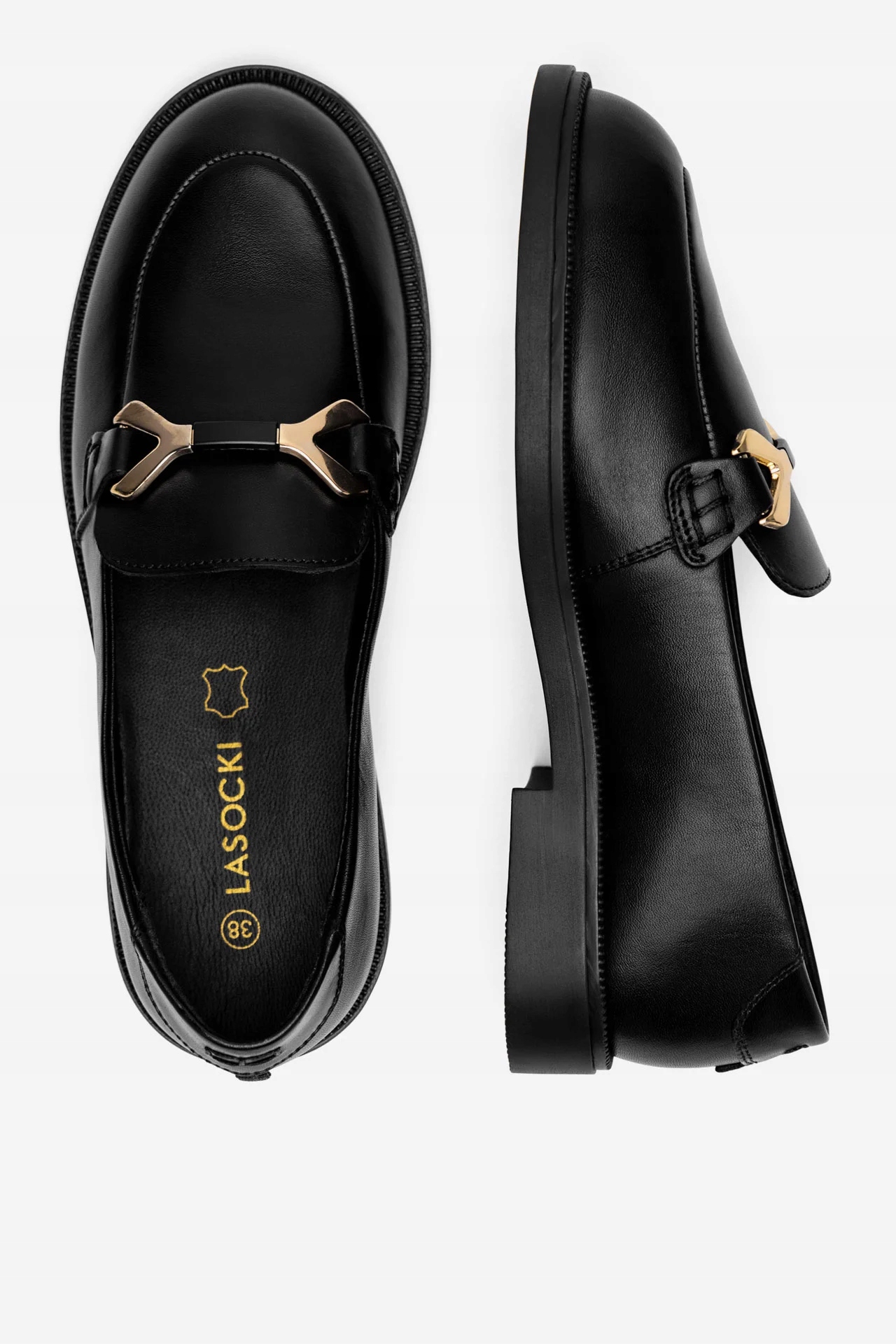 Відкрийте для себе комфорт та елегантність в одній з останніх моделей Moccasin від бренду Lasocki! Ці взуття для ковзання -це унікальне поєднання випадкового стилю з функціональністю. Чорна шкіряна продуктивність гарантує довговічність та універсальність, завдяки якому вони ідеально відповідають вашим щоденним нарядам. Плоска підошва забезпечує комфорт на кожному кроці, а круглий ніс додає чарівності взуттям. Насолоджуйтесь стилем та винятковим комфортом з мокасинами Lasocki!