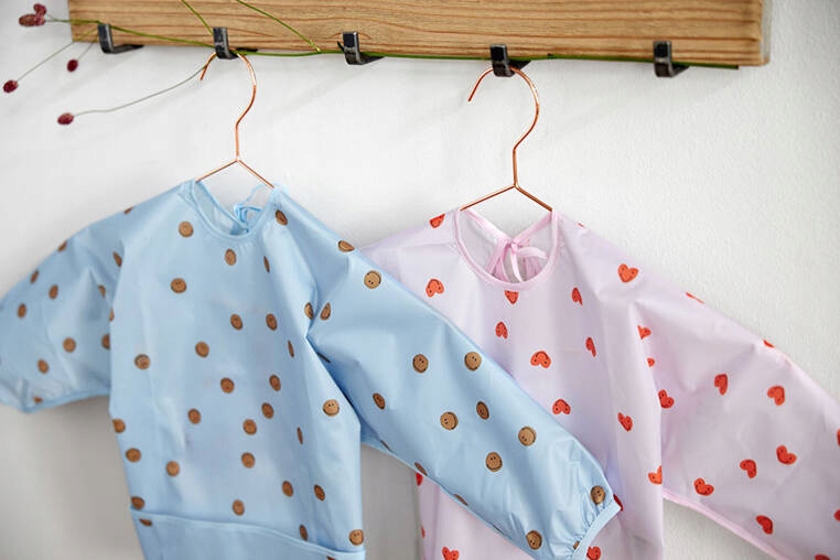 Набір з двох практичних, легко мильних нагрудників німецькою маркою Lassig. Вони великі, виготовлені з водонепроникного пластику - одна легка лаванда в червоних усміхнених серцях, інше світло з темно -зеленим подолом у багатокористувальній частині з веселкою. У них довгі рукави, м'яка стрічка і краватка для стрічок, а також функціональна кишеня внизу. Вони призначені для дітей віком від 6 до 24 місяців. Вони працюватимуть не тільки під час годування малюка, але і з кожною творчою діяльністю дитини: живопис, глина, пластилінові ігри або спроби приготувати страву самостійно. Зручно, вони не обмежують рухи, вони добре дотримуються одягу. Вони є частиною більшої колекції Happy Rascals. Ви можете вибрати для них інший продукт в одному кольоровому діапазоні або з тим самим мотивом.