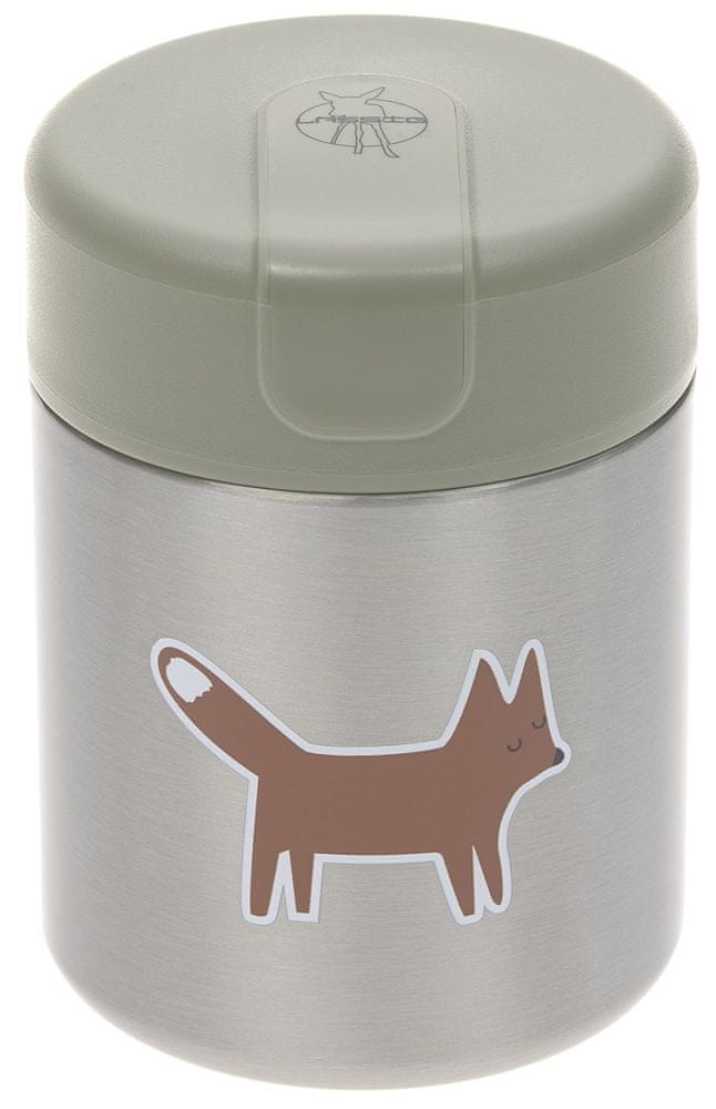 Контейнер - обідній термос 315 мл Little Forest Lisek Lassig. Контейнер - обідній термос від німецького бренду LASSIG стане в нагоді не тільки в подорожах, але і під час прогулянок або поїздок. Термос об'ємом 315 мл легкий, зручний і міцний - завдяки подвійним стінкам з нержавіючої сталі він довго зберігає температуру страв, як гарячих, так і холодних. Широкий отвір полегшує наповнення, подачу та очищення. Герметична світло-оливкова кришка щільно прилягає до ємності і має додатковий силіконовий ущільнювач, що забезпечує герметичність ємності. Контейнер простий у використанні і має ергономічну форму - легко поміститься в рюкзак, сумочку або бічну кишеню. Він сріблястого кольору з зображенням лисиці теракотового кольору.
