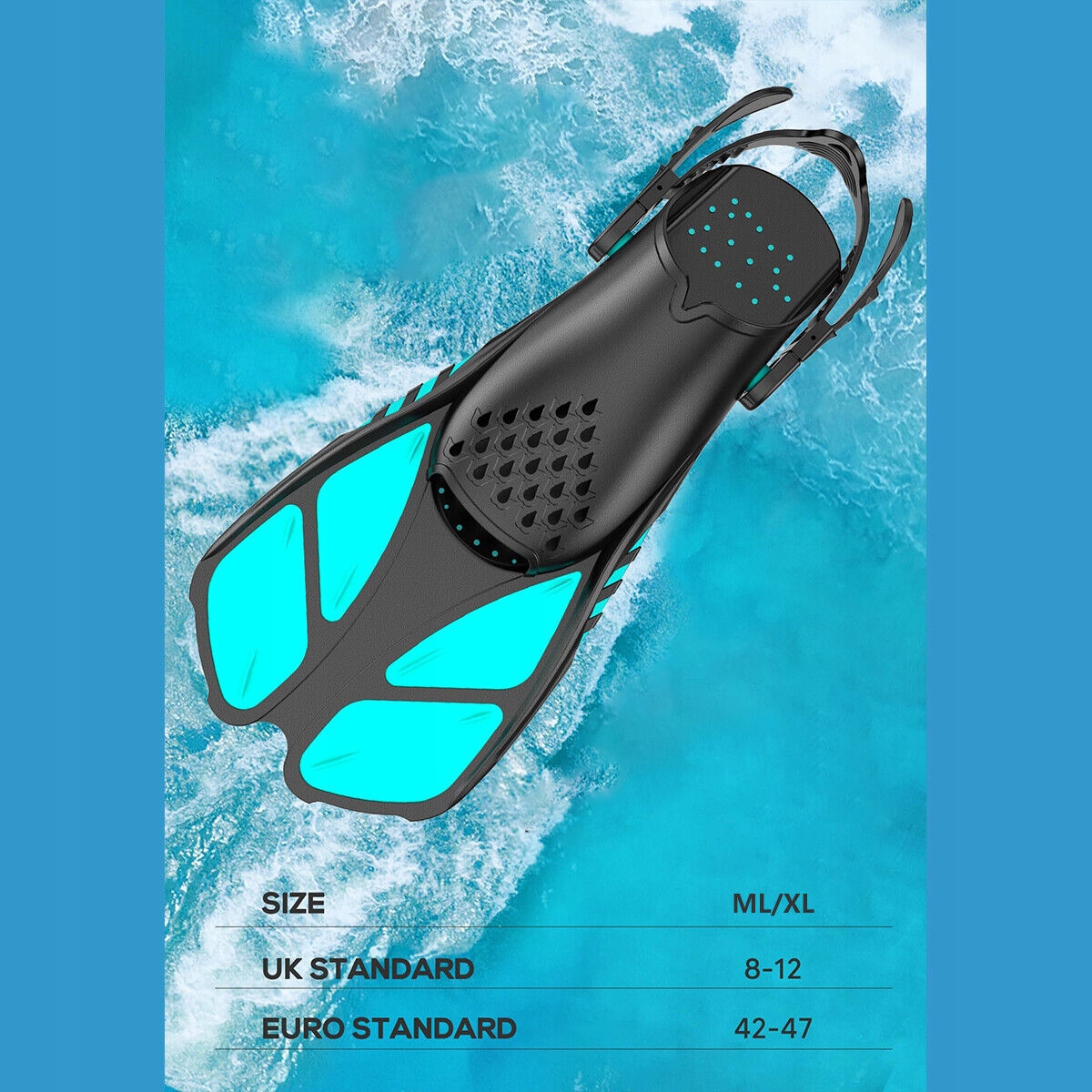 Міцні та дихаючі ласти для дайвінгу: високоякісні ласти для дайвінгу з кишенею для ніг анатомічної форми. Бічні ребра забезпечують чудову амортизацію та стійкість. Розміри ML/XL №42-47. Регульована система пряжок підходить для багатьох розмірів взуття, тому вся родина може досліджувати підводний світ.