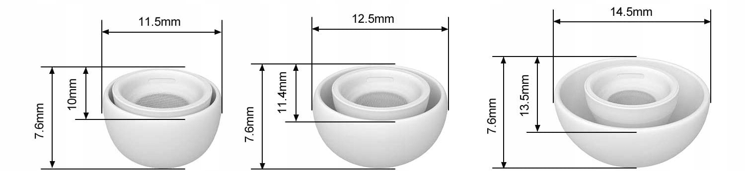 • Набір накладок (6 шт.) (колір: Білий) з розмірами(S (10MM), M (12MM), L ( 14MM) )),
