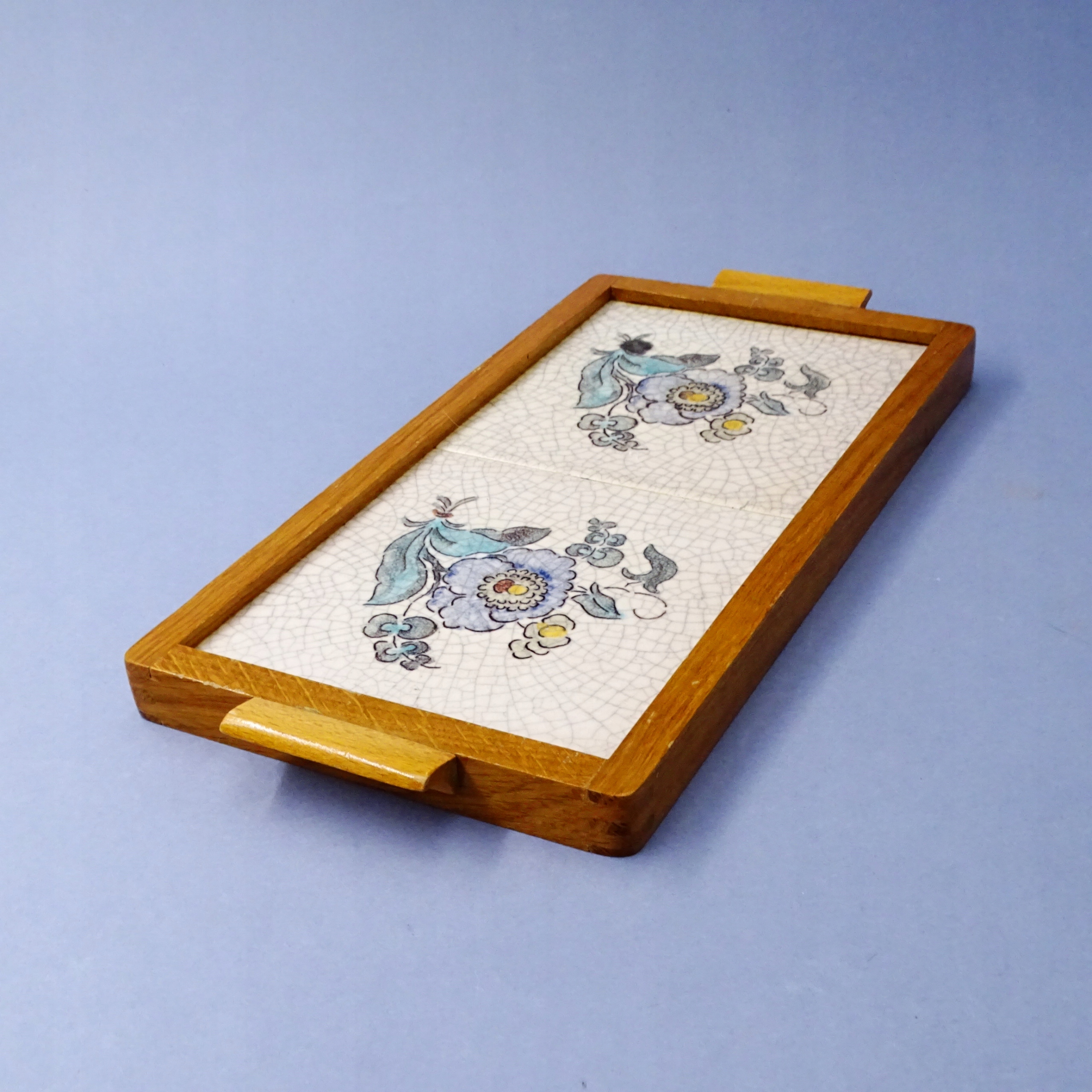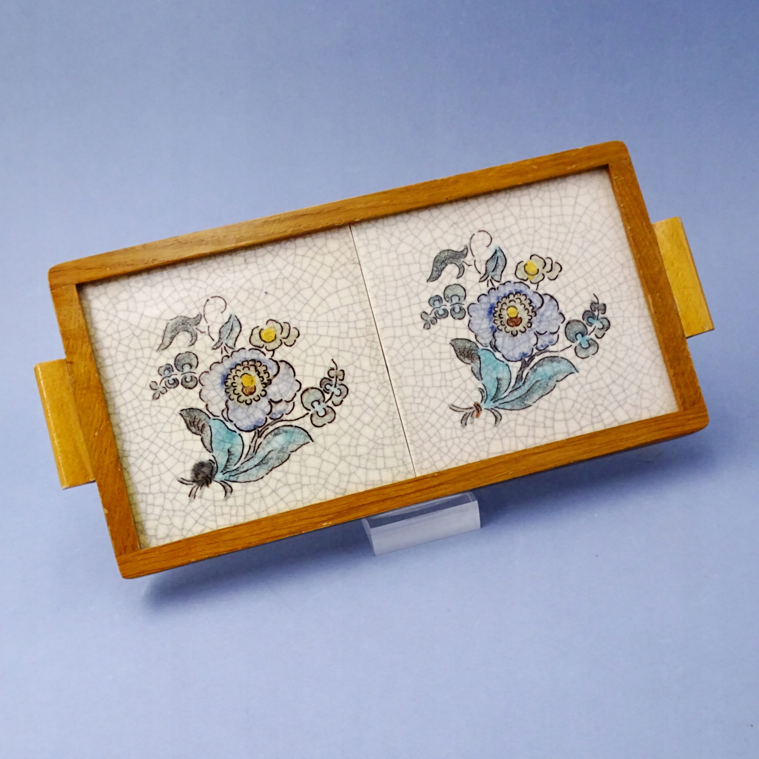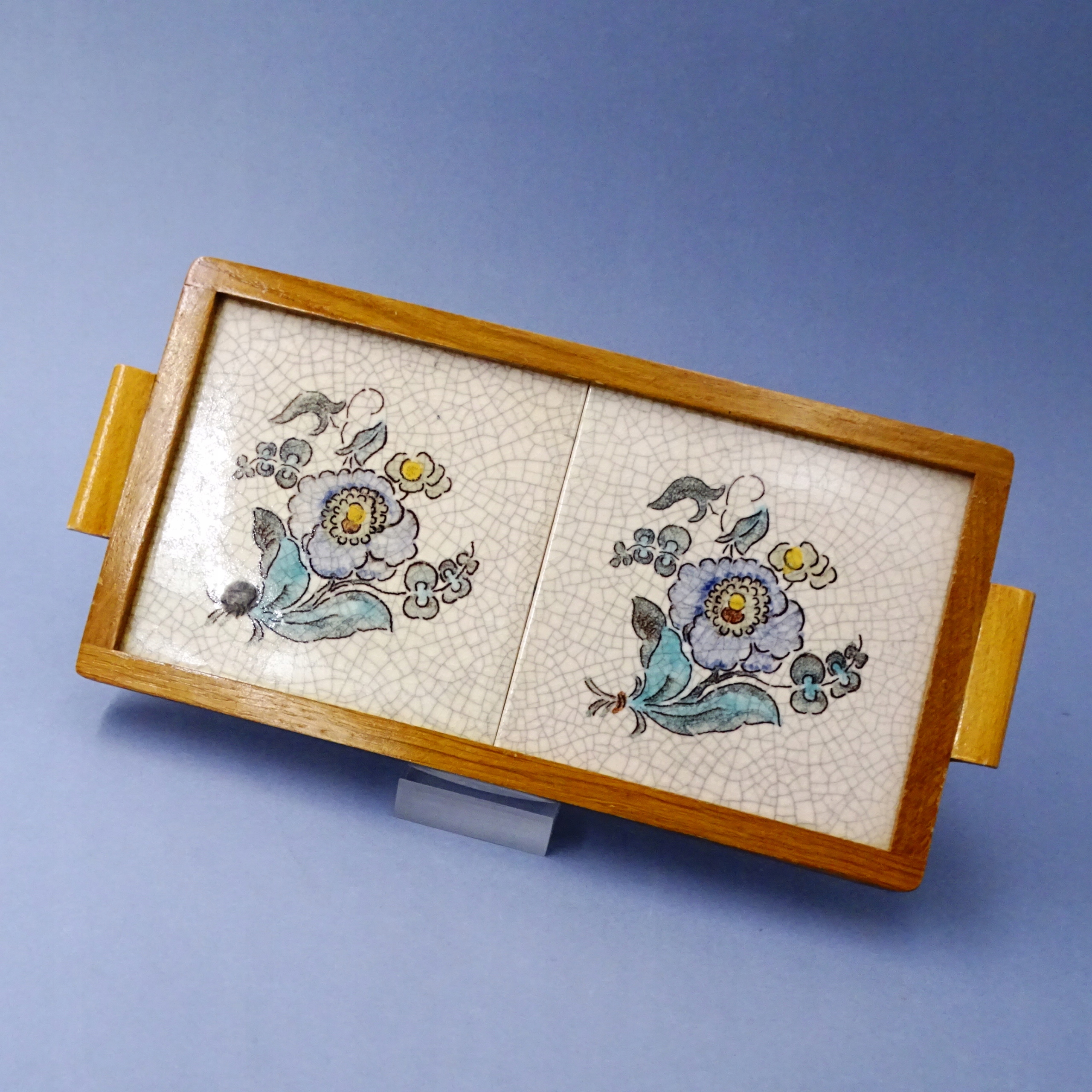 lata 30-te PIĘKNA TACA CERAMICZNE KAFLE DREWNO
