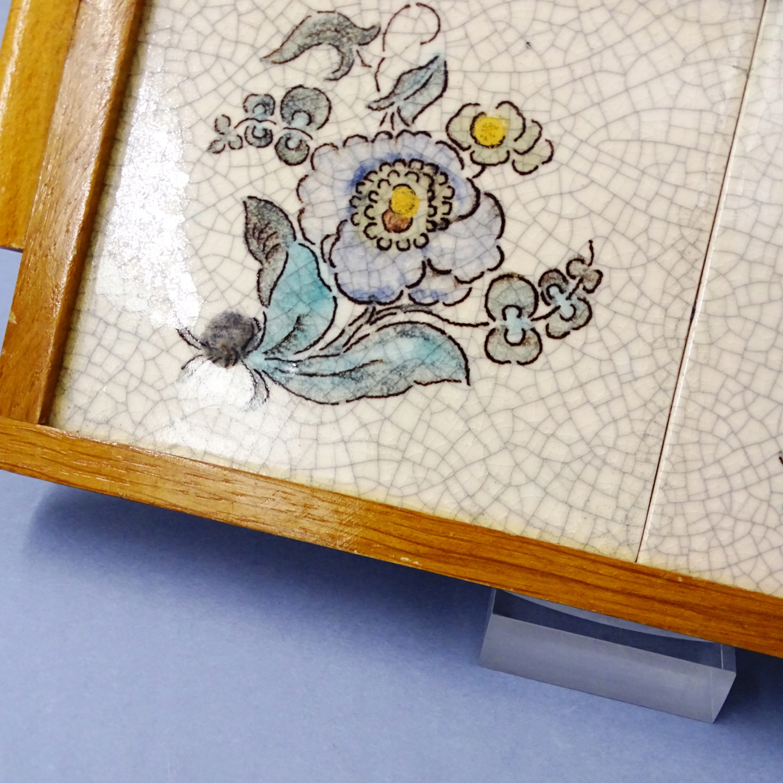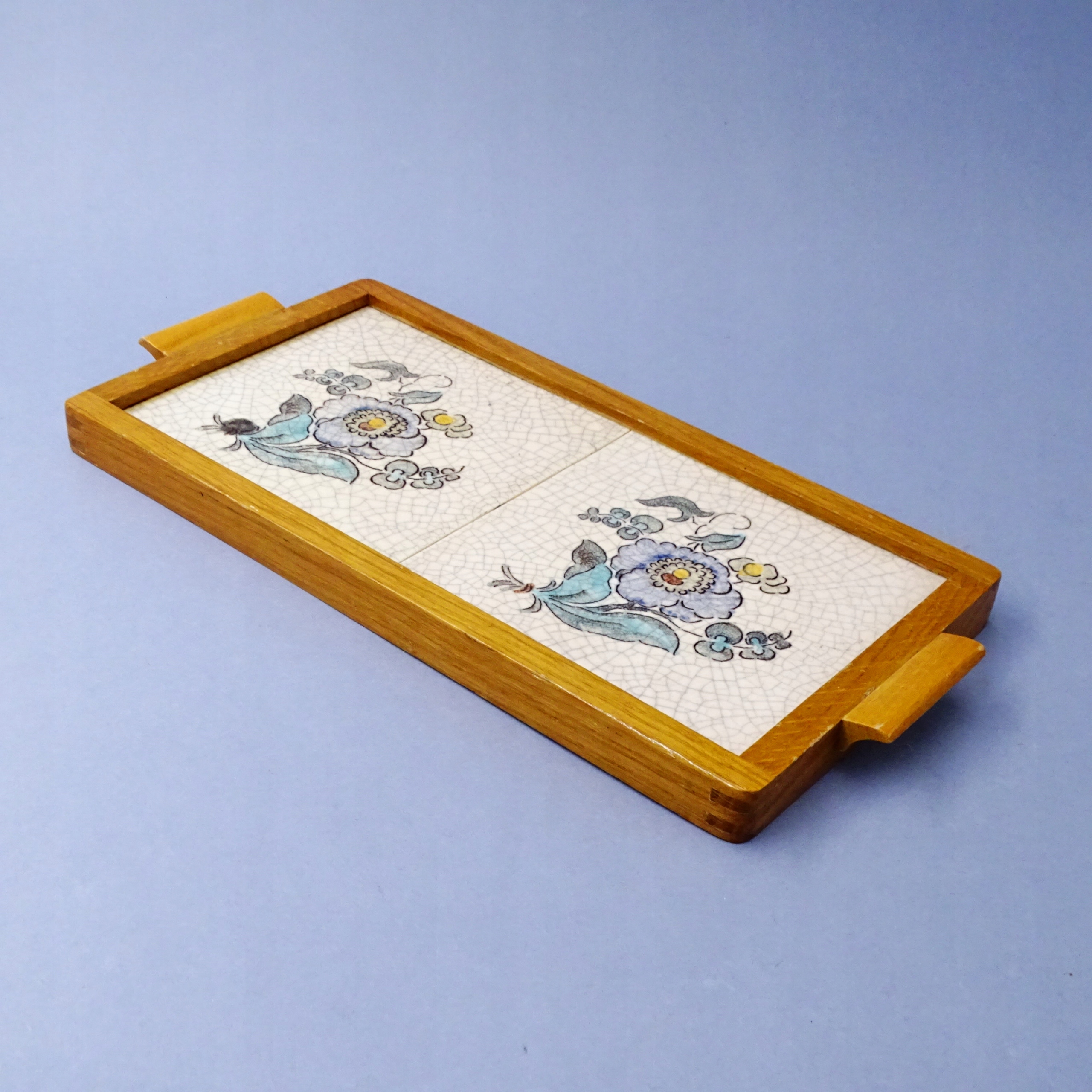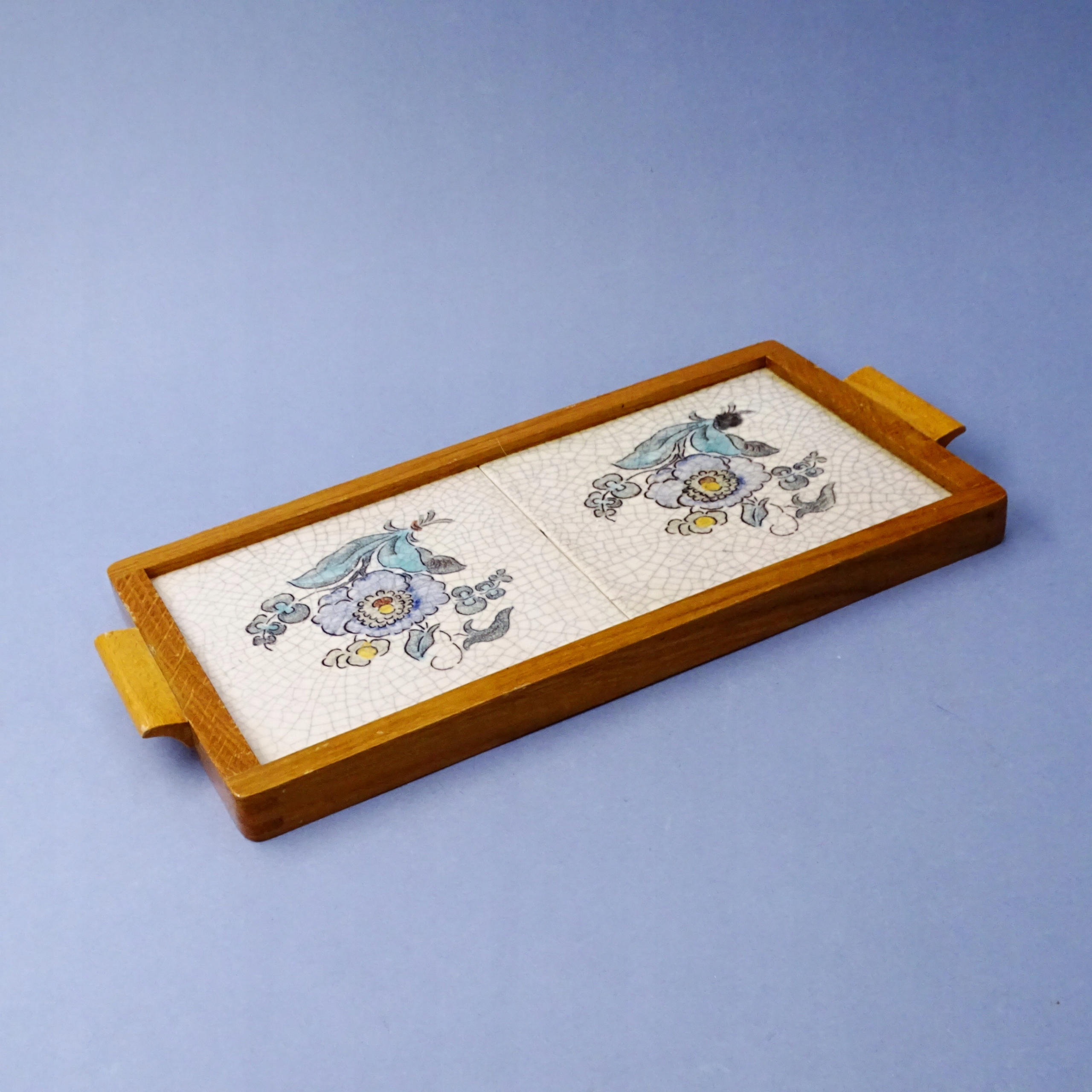 lata 30-te PIĘKNA TACA CERAMICZNE KAFLE DREWNO