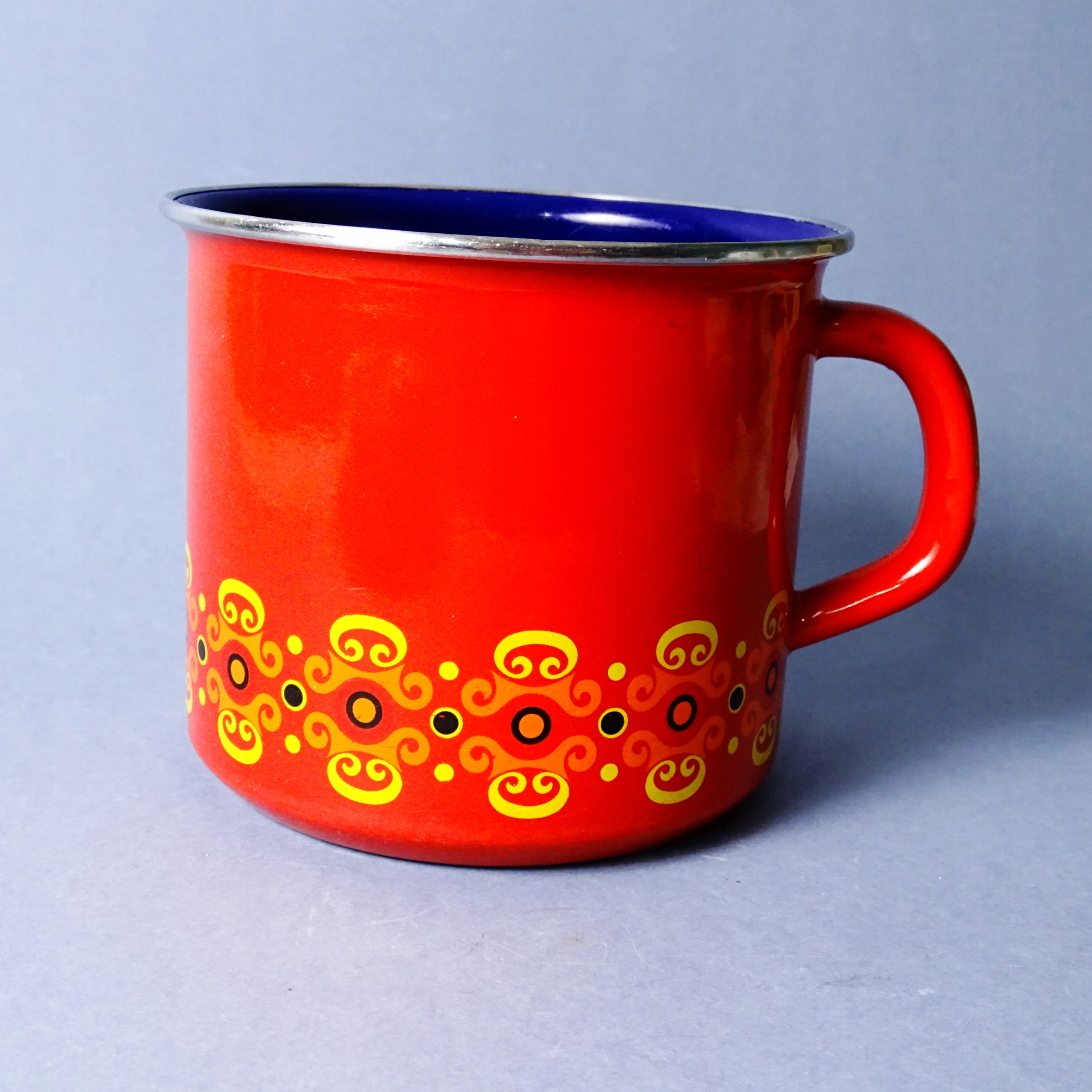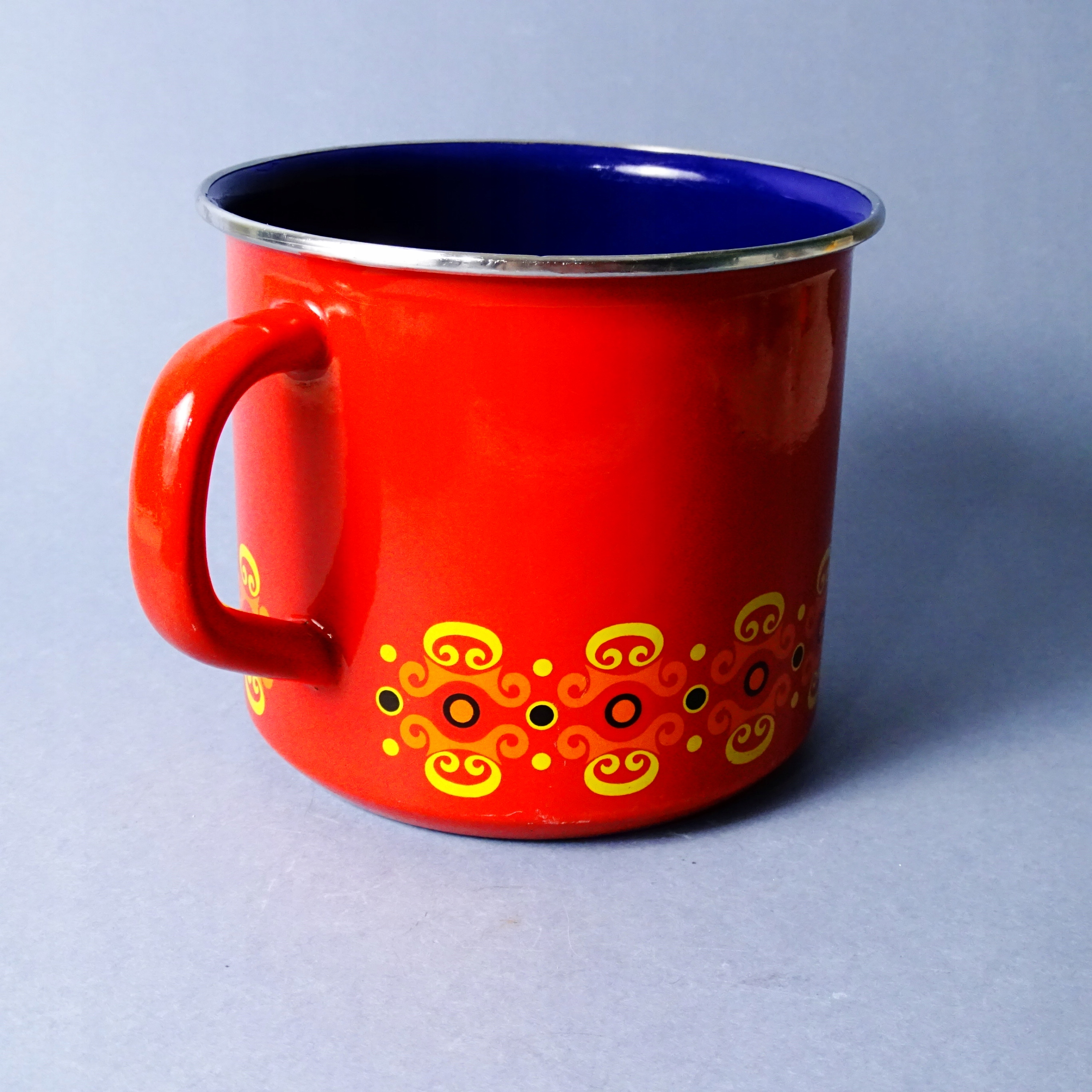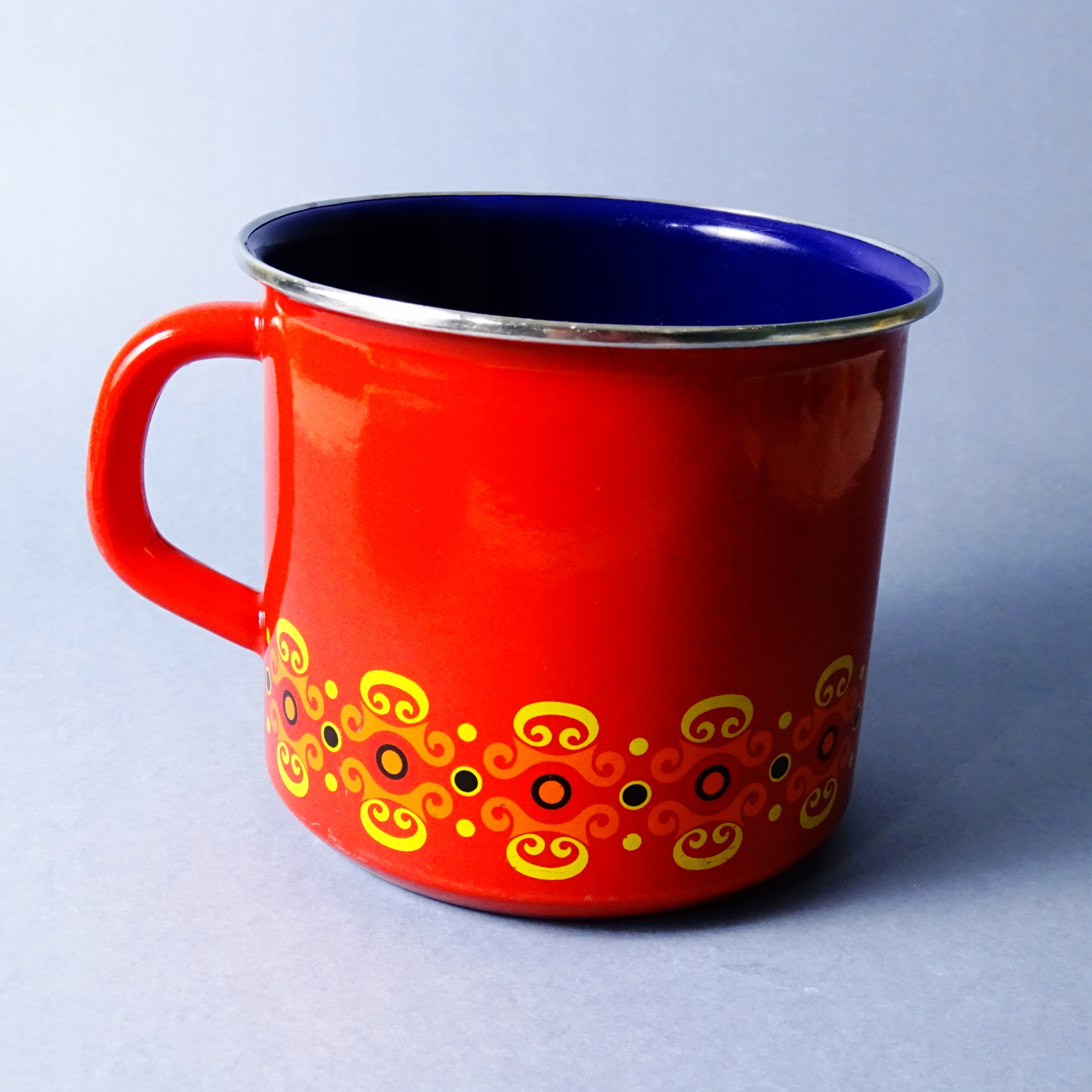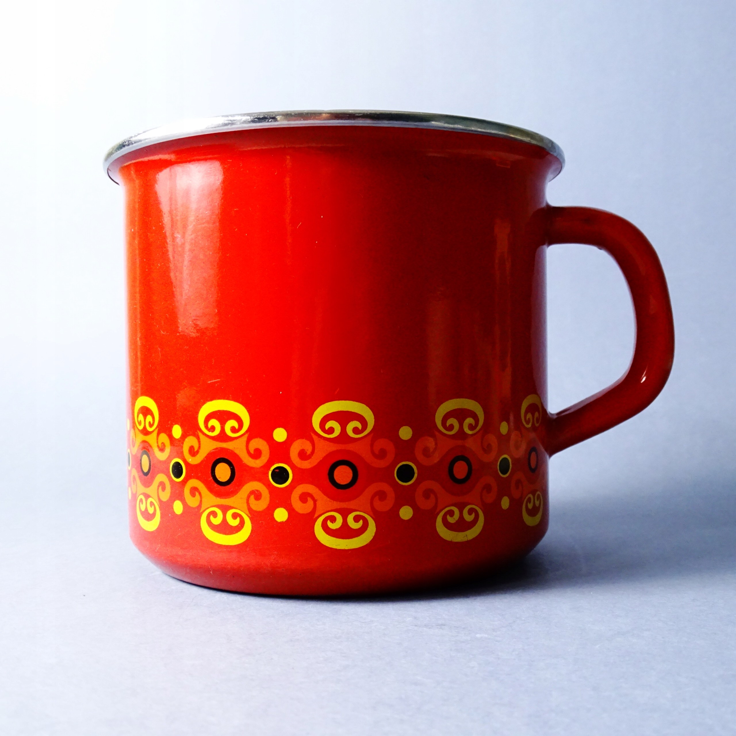 lata 70-te PIĘKNY STARY CZERWONY EMALIOWANY GARNEK
