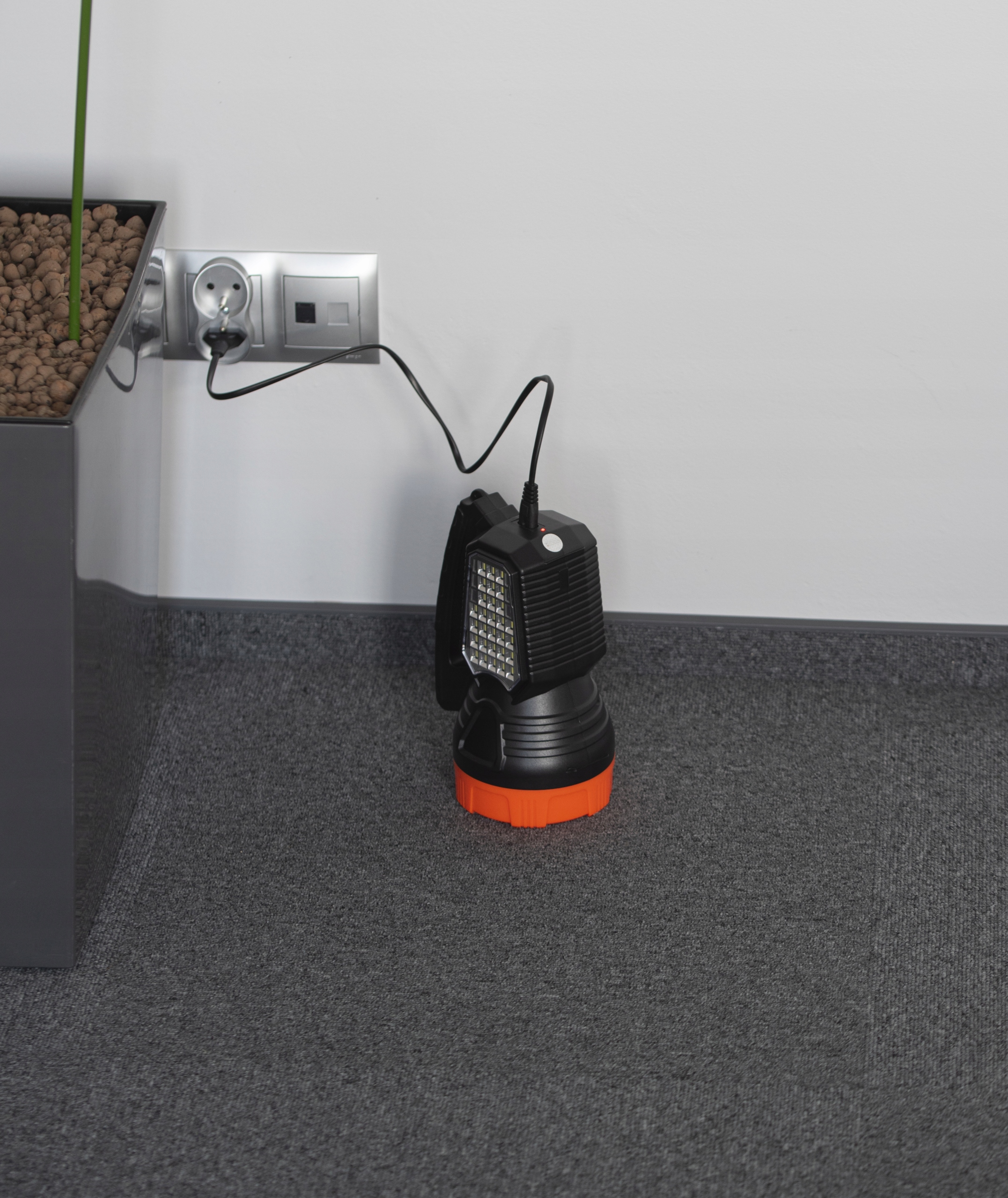 Прожектор із двома функціями, оснащений ефективним джерелом живлення від акумулятора, який не потребує заміни акумулятора. Вбудовані 4 акумулятори загальною потужністю6000mAh заряджається безпосередньо від розетки 230V. Ліхтарик можна використовувати не тільки як прожектор, але і як стоячий похідний світильник або лампу для читання.