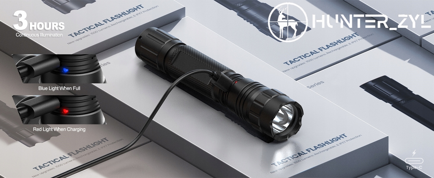 - Поверніть головку ліхтарика, щоб відкрити порт для заряджання, і зарядіть його за допомогою кабелю для передачі даних, що входить до комплекту, індикатора заряджання синій індикатор Індикатор означає, що заряджання займає лише 2 години, щоб забезпечити 4,5 години світла. Збільшення терміну служби батареї та зменшення ризику її заміни та втрати.