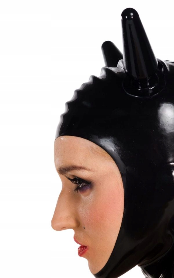 Повністю фетишна маска з рогами, які виконують функцію двох анальних пробок. Геніальне рішення, яке дозволяє дати волю вашій уяві. Обличчя оголене. Все зроблено з латексу. Пеніси наповнені піною. Застібається ззаду на блискавку.