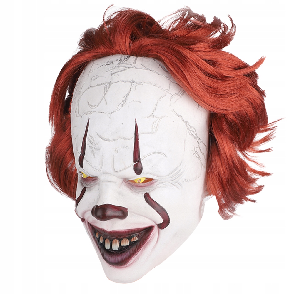Маска клоуна — це кошмарний образ злого клоуна з білим обличчям, жовтими зубами та яскраво-червоною посмішкою, кути якої тягнуться до чола.