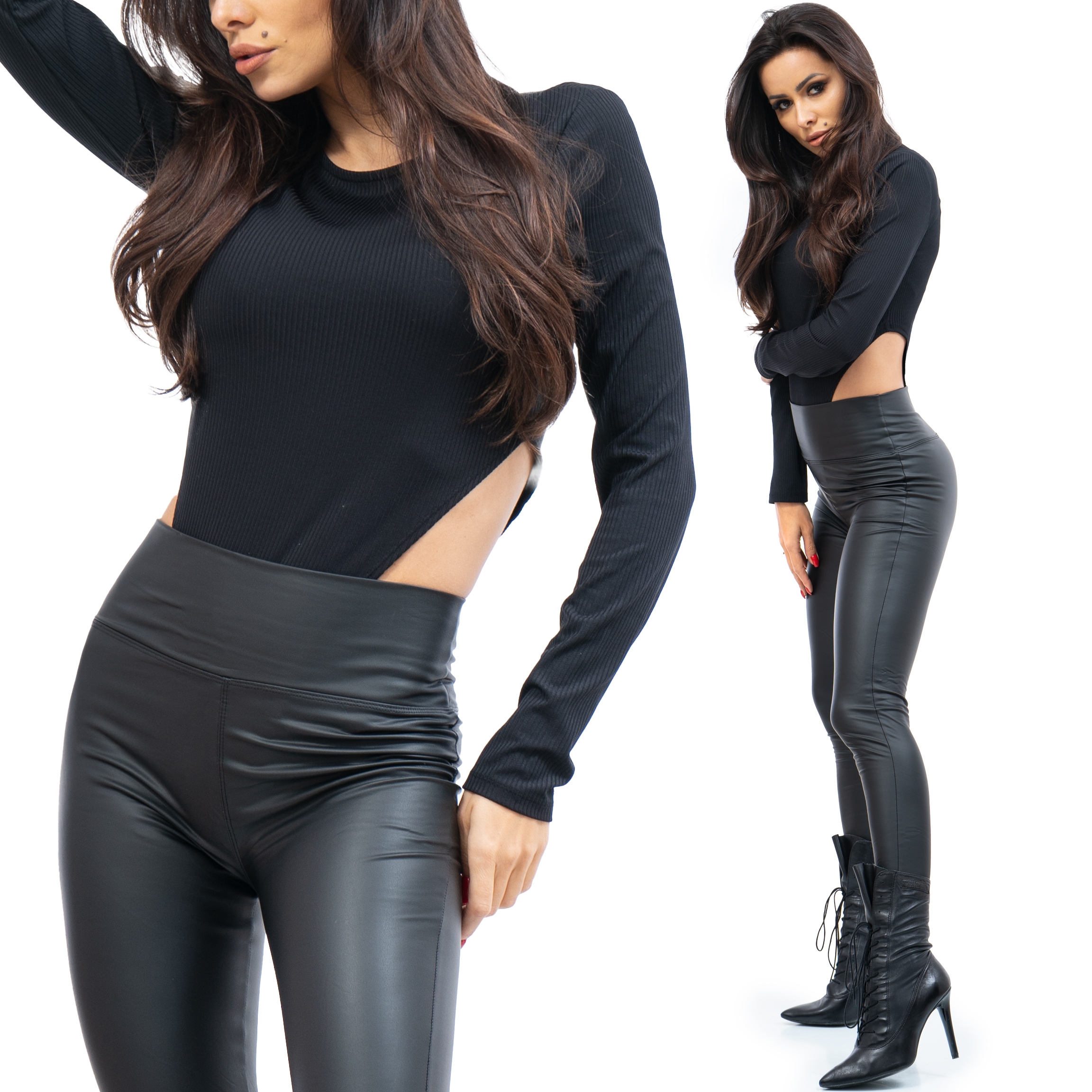 Летгінси з екошкіри з високим поясом
