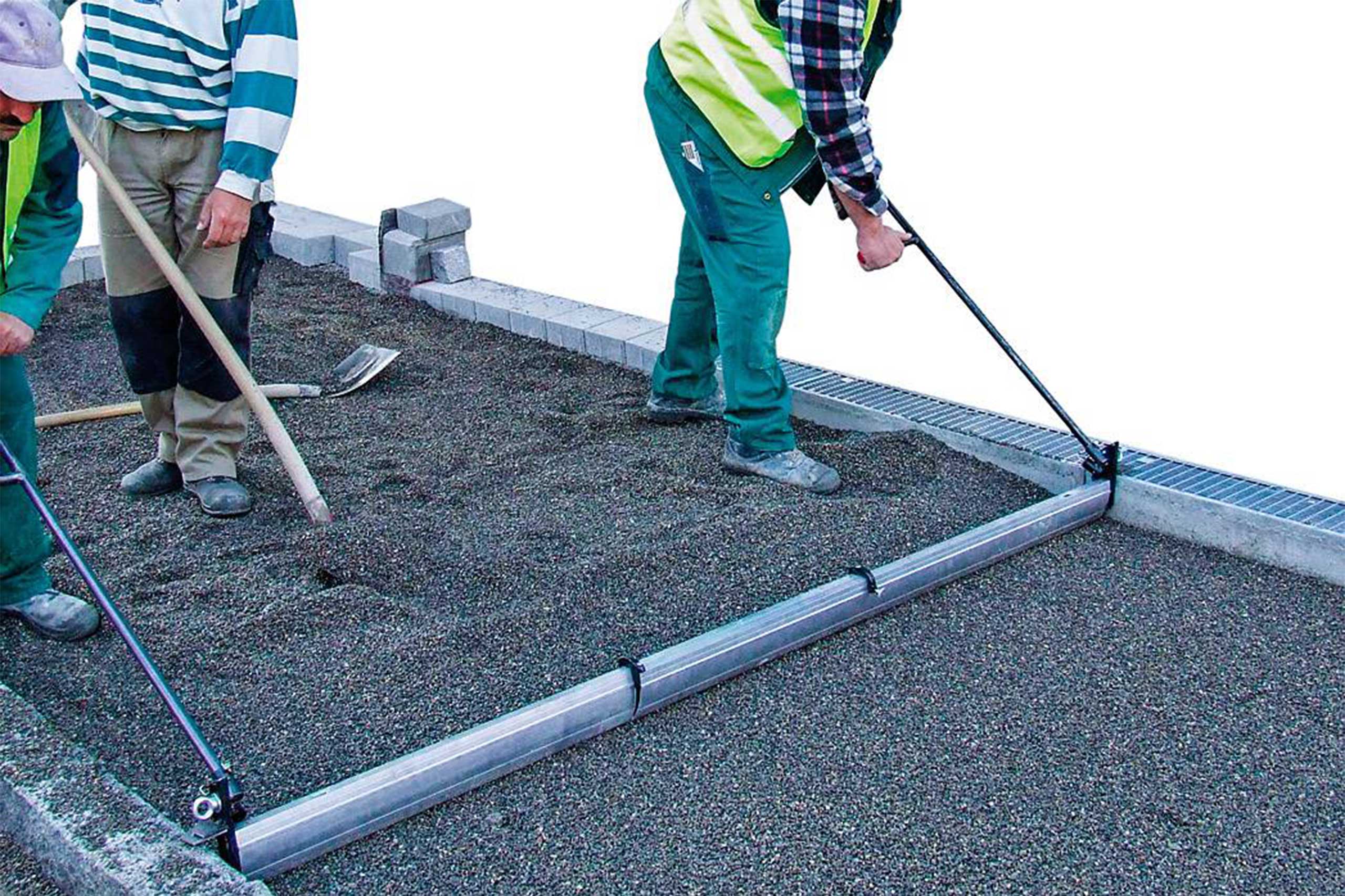 TELEPLAN TP — ручна система вирівнювання для малих і середніх поверхонь. Це особливо корисно під час вирівнювання твердого, утрамбованого піску або коли з боків робочої доріжки є перешкоди, наприклад, бордюри. Алюмінієвий порожнистий профіль легкий і міцний.