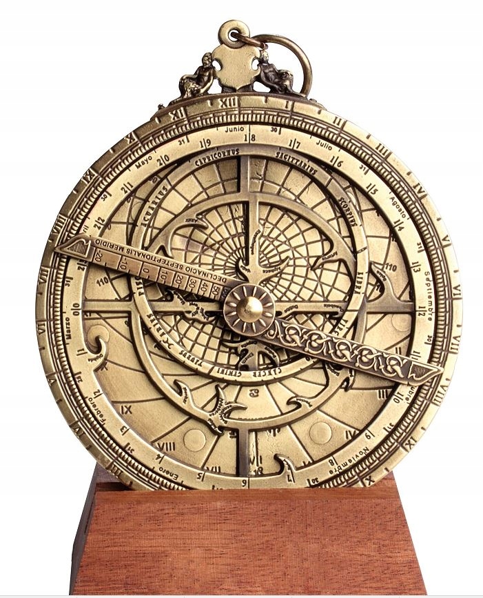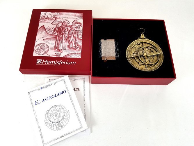 Саме завдяки їм астролябія потрапила в Європу в 12 столітті. Приблизно до 1650 року це був найпоширеніший астрономічний інструмент, який потім був замінений більш точними приладами. Репліка виготовлена вручну з лакованої латуні та встановлена на дерев’яну основу. Її відрізняє увага до деталей та висока історична цінність. Він заснований на оновленій карті неба і може використовуватися для поточних вимірювань.