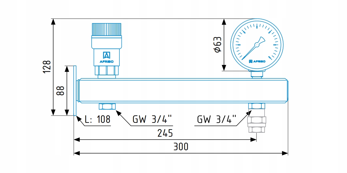 ЛАТУННА БЕЗПЕЧНА ГРУПА, ГВП із запобіжним клапаном MS 6 бар AFRISO