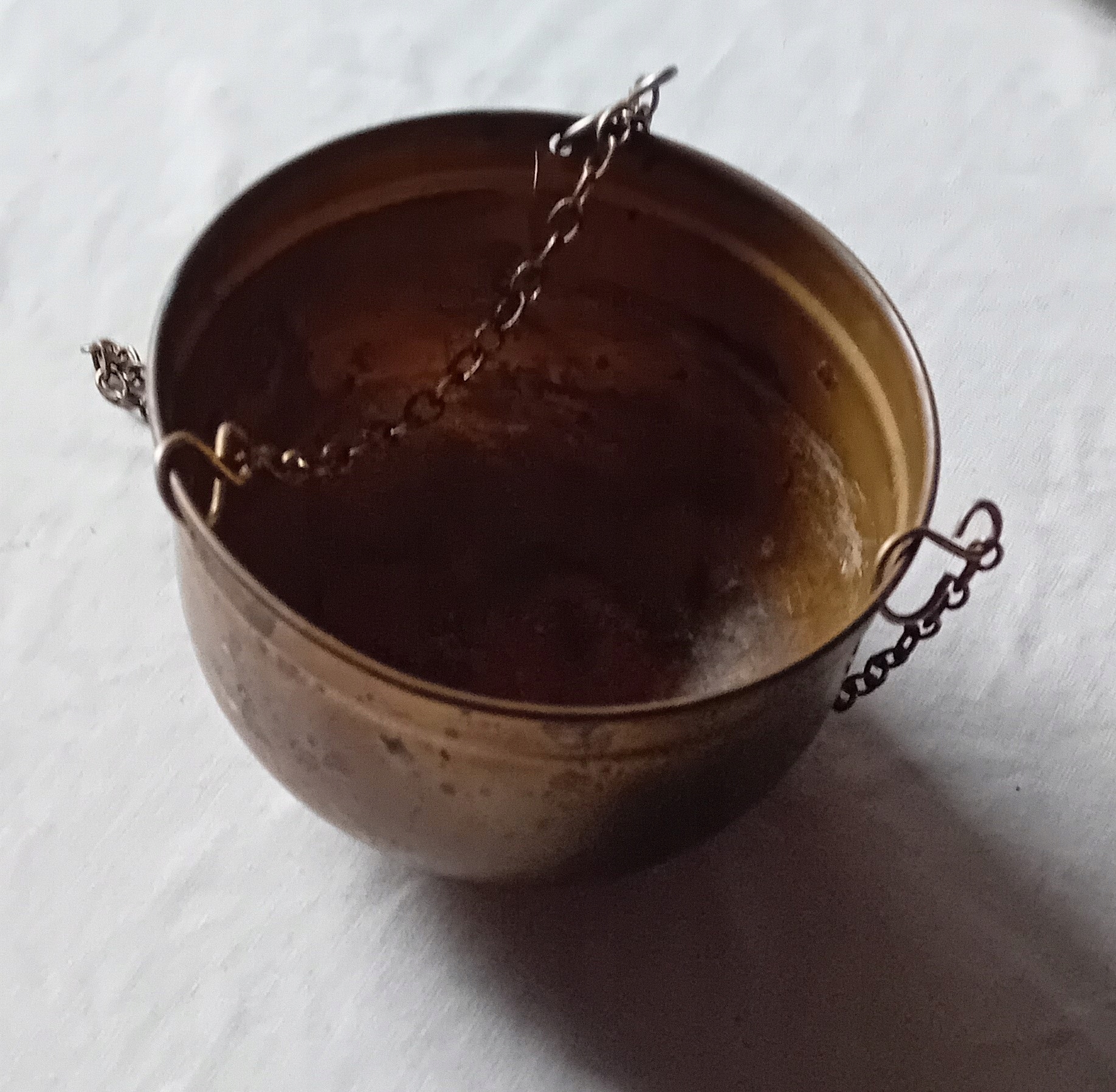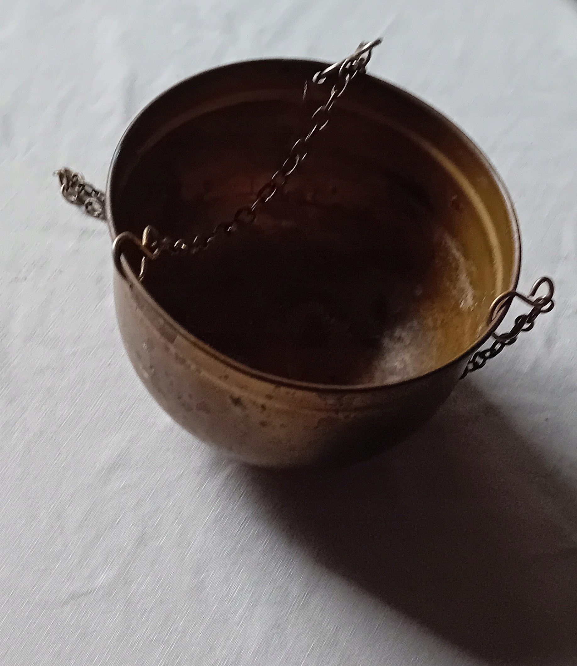 Латунна кришка горщика висіла на ланцюгах. Діаметр 11,5 див.