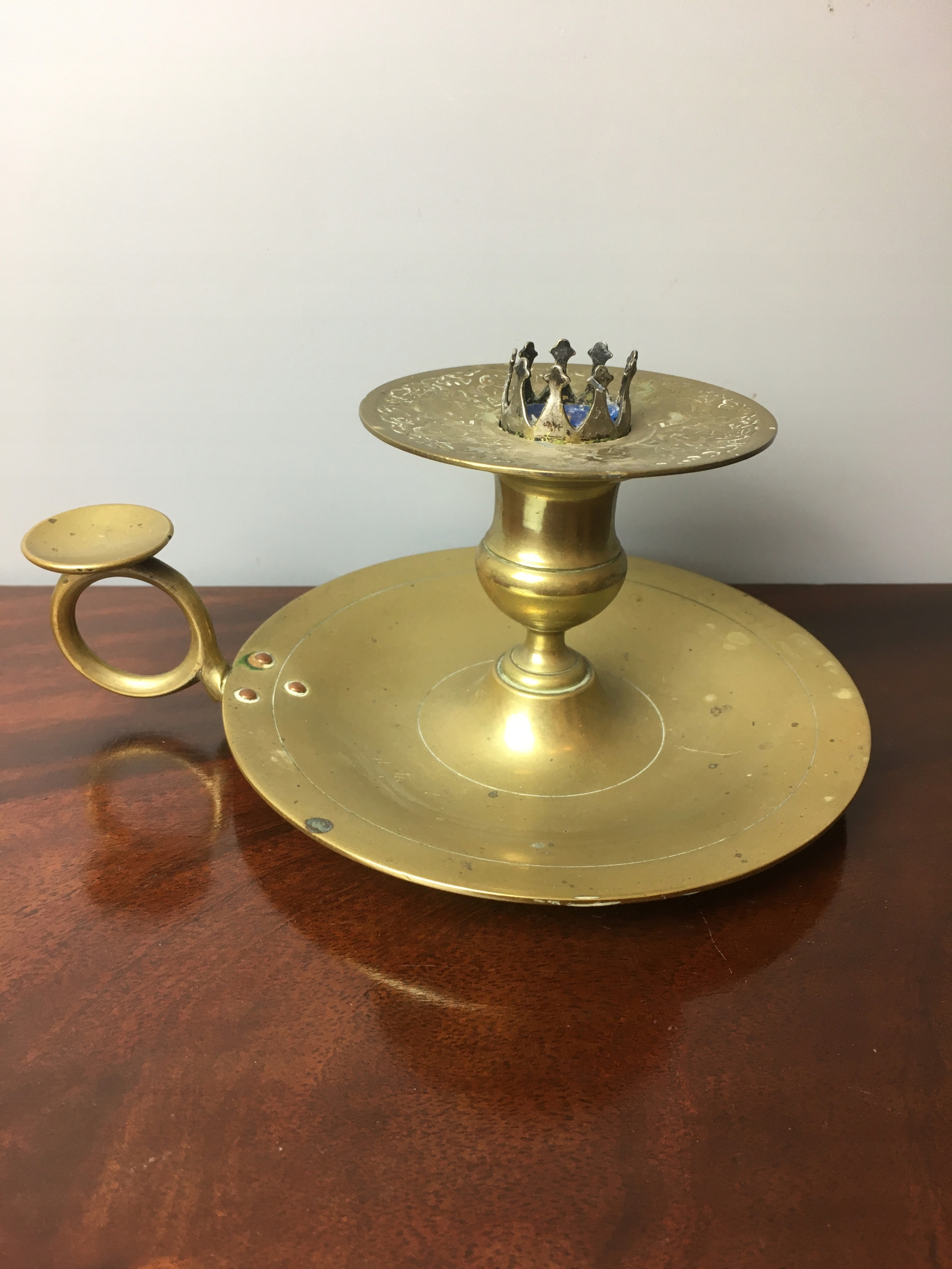 Стара лампа, латунний свічник у хорошому стані, кілька плям окислення.