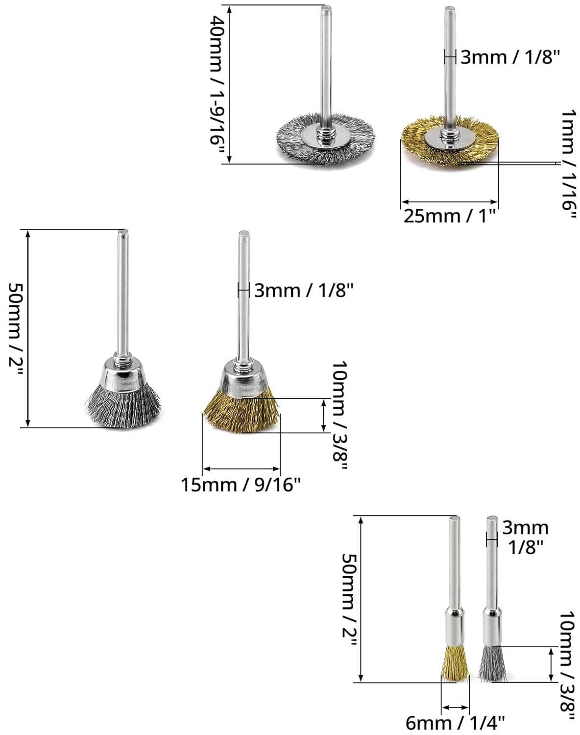 ✅ різні форми та твердість - міні -розміри, диск, горщик та циліндричні щітки забезпечують точність у важких для досягнення місця.
