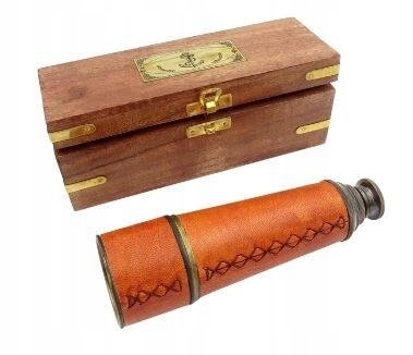 МУДНИЙ ТА ШКІРЯНИЙ ТЕЛЕСКОП У ДЕРЕВ'ЯНІЙ КОРОБЦІ NC2356B - Латунний та шкіряний телескоп для шукачів скарбів і допитливих дослідників. Він добре підійде як реквізит у шоу або під час гри в піратів. Він прикрасить офіс і каюту в морському стилі. Підійде як оригінальний подарунок для моряка або моряка. Чудовий латунний безель в оправі зі справжньої червоної шкіри. Телескоп складаний, 6 елементів. Довжина телескопа в розкладеному вигляді становить 40 см. Довжина телескопа в складеному вигляді - 18 см. Телескоп, упакований в дерев'яну коробку, ідеально підходить для вишуканого подарунка.