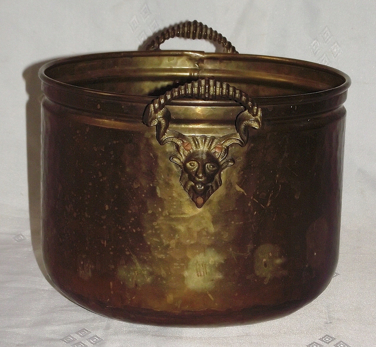 Предметом аукціону є старий латунний горщик для квітів.