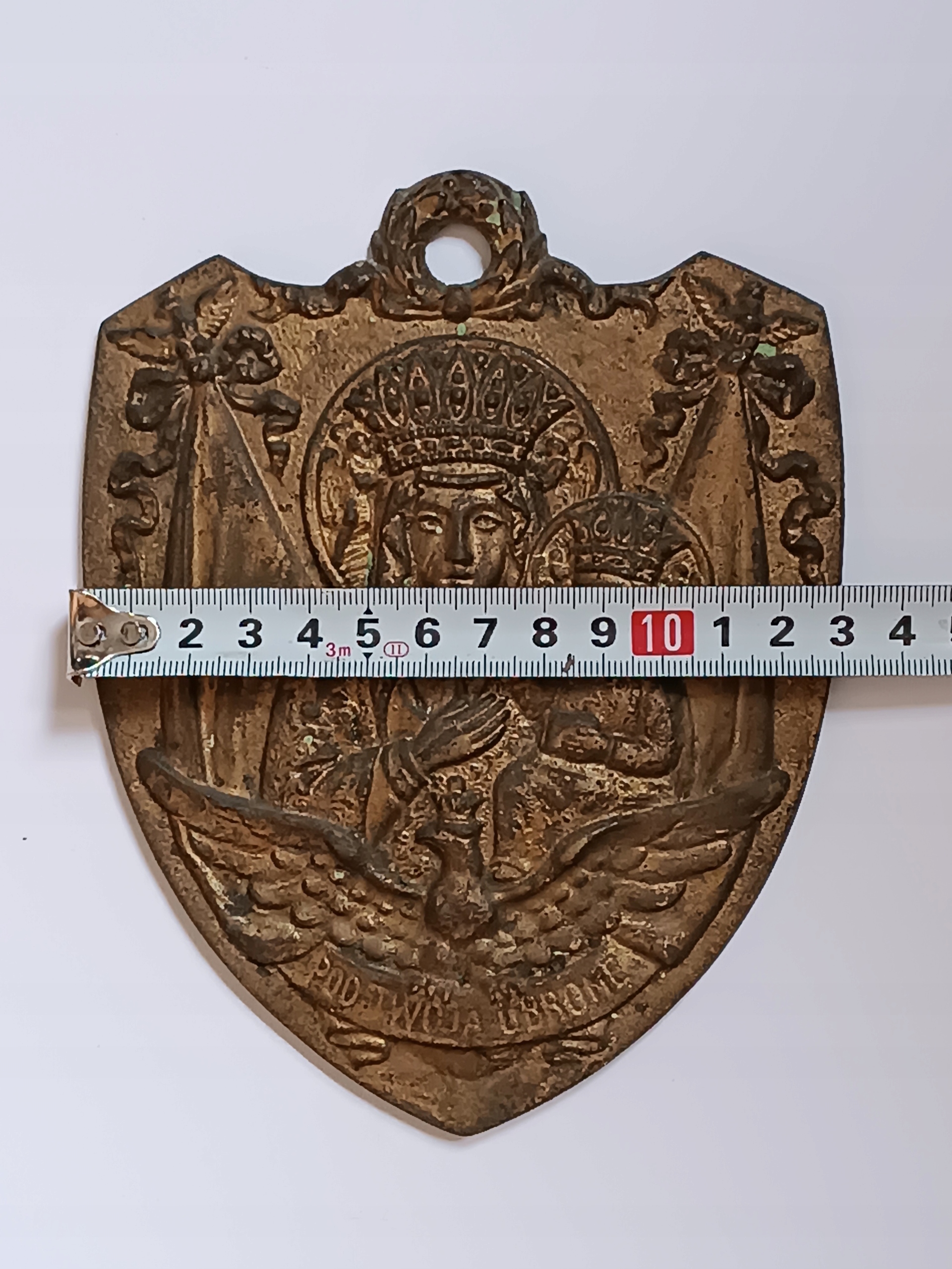 - Brass rhong with the image of Our Lady of Częstochowa with the Baby Jesus, both crowned, which emphasizes their royal and sacred character