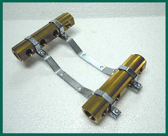 Розподільник складається з 2 латунних балок, 2 кронштейнів і 2 заглушки 1 дюйм. Балки мають різьблення 1 дюйм збоку для з’єднання для встановлення,