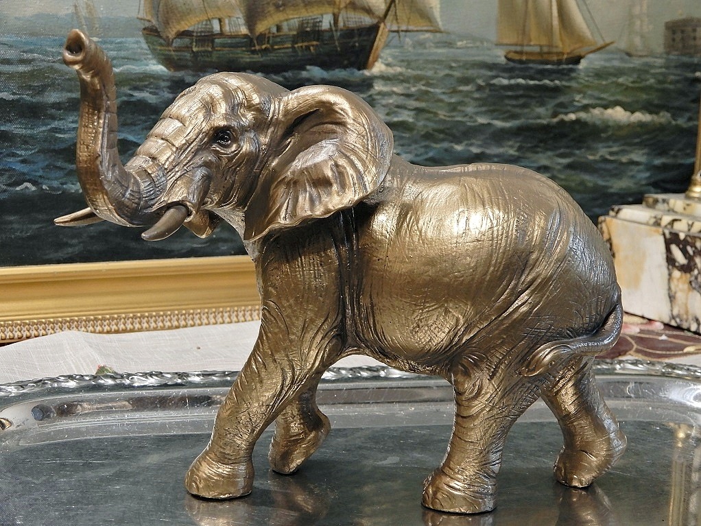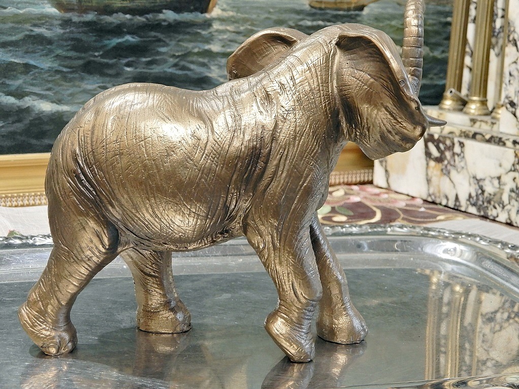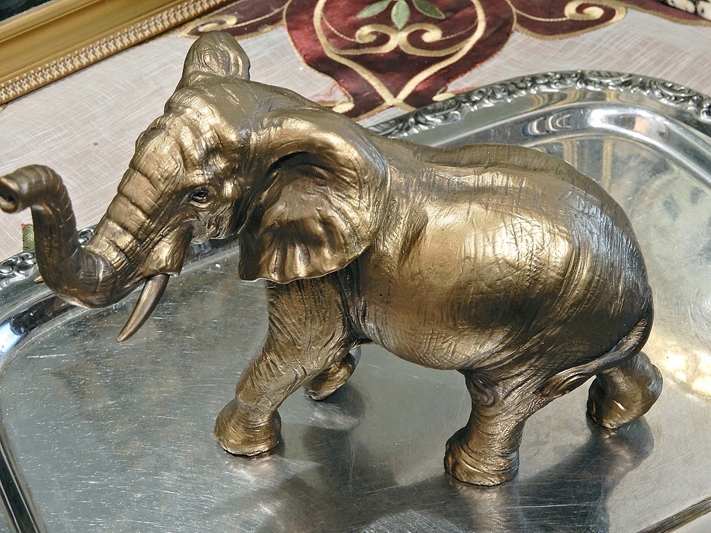 Запрошую купити чудову фігурку слона,надзвичайно реалістичну,символ сили і мудрості,на удачу.Фігурка виготовлена з конгломерату смоли та мінералів.Покрита латунню. Товар виглядає чудово. Це може бути чудовою ідеєю для оригінального подарунка.