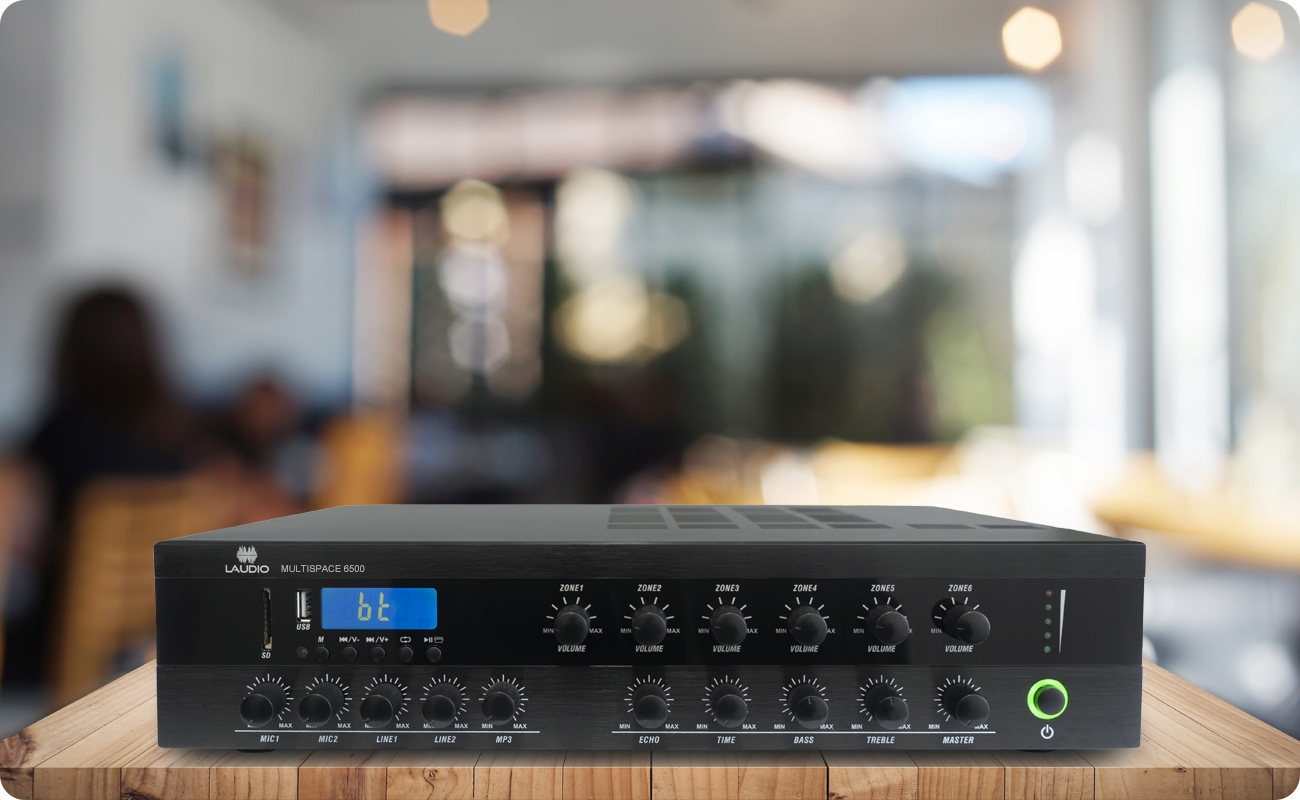 Зонний підсилювач, про який ми тут говоримо, є надзвичайно складним і водночас дуже простим у використанні. Крім титульного підсилення, пристрій також розділяє нашу звукову систему на зони. Підсилювач Laudio MULTISPACE 6500 пропонує поділ системи на 6 звукових зон.