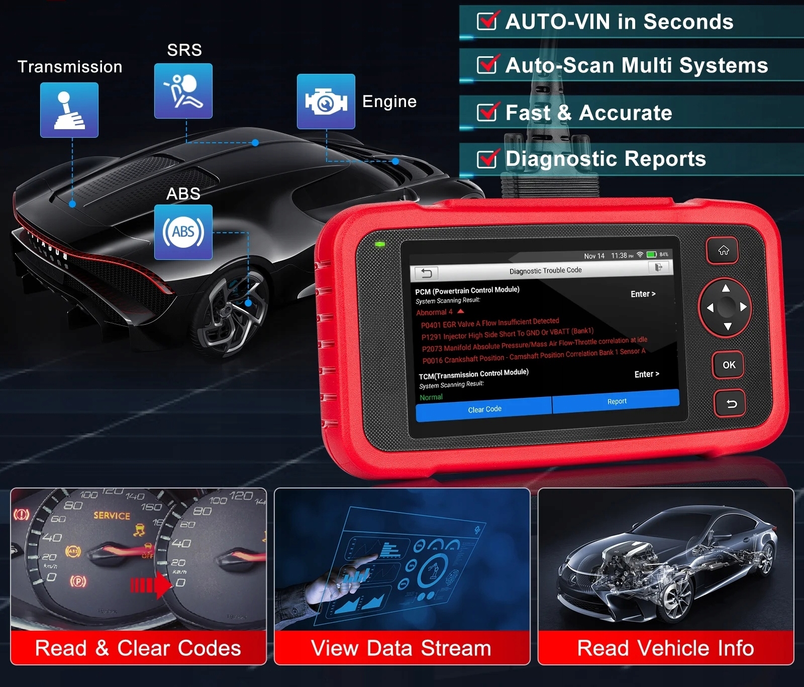 Представляємо діагностичний тестер Launch X431 CRP IMMO, який пропонує діагностику 4 основних систем автомобіля: ABS, SRS Airbag, двигун і коробка передач. Пристрій підтримує понад 57 марок автомобілів і понад 10 000 моделейвключно з OBDII, EOBD і JOBD-сумісними транспортними засобами з 1996 року.