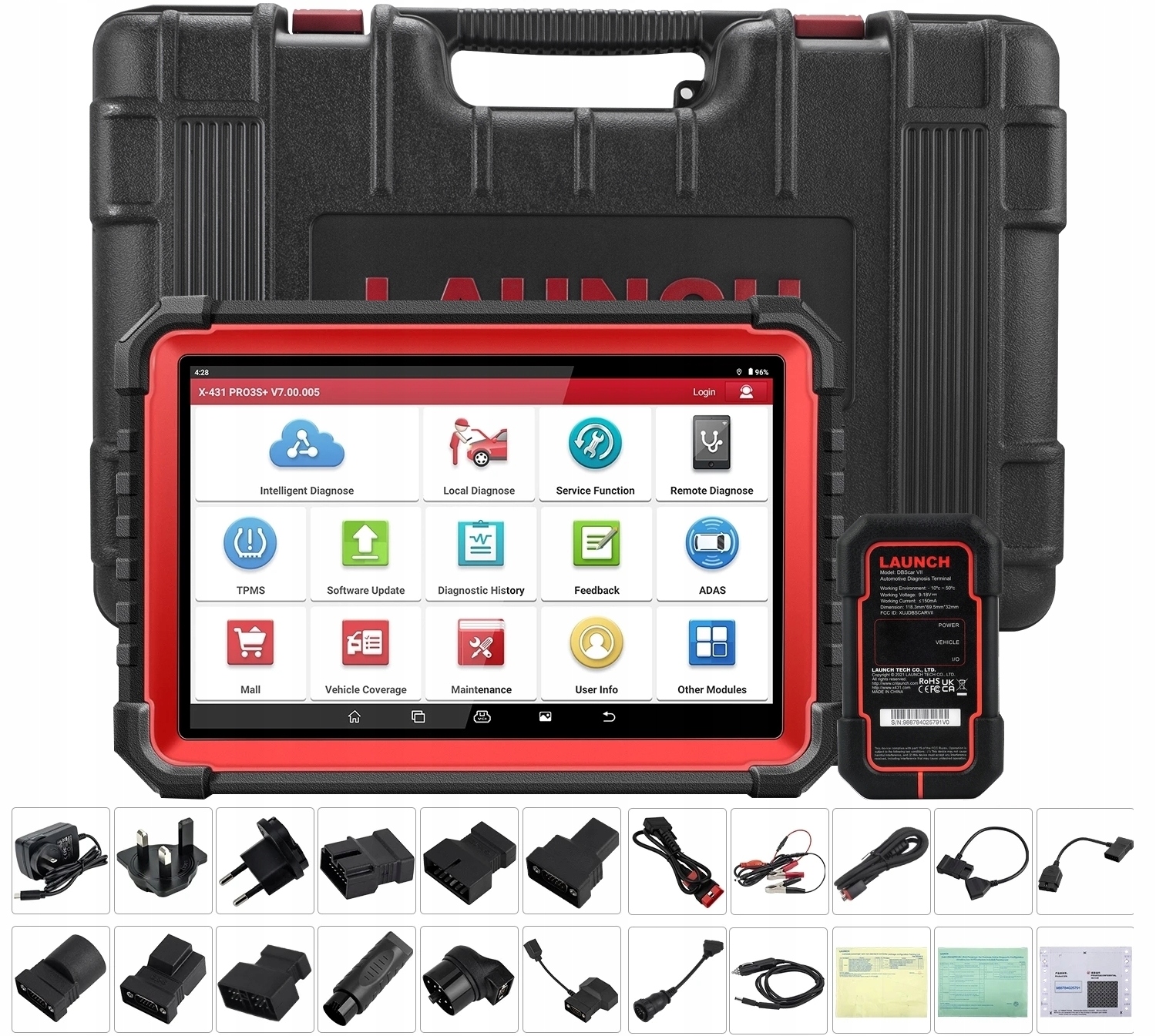 Кожна модель Launch має інтерфейс Bluetooth, а набір додатково збагачений OBD-адаптерами, що підтримують роз’єми старішого типу.