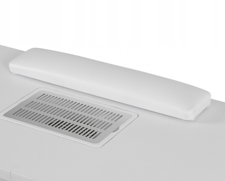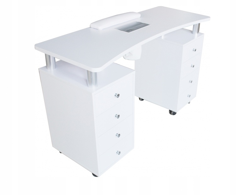Професійний столик для краси Лаураце елегантний і зручний манікюрний стіл. Стійкий манікюрний стіл з вбудованим пилопоглиначем Стіл для краси виготовлений з білої фанери і має 2 колони з місткими ящиками. Манікюрний стіл Laura - це елегантні та практичні меблі для краси.