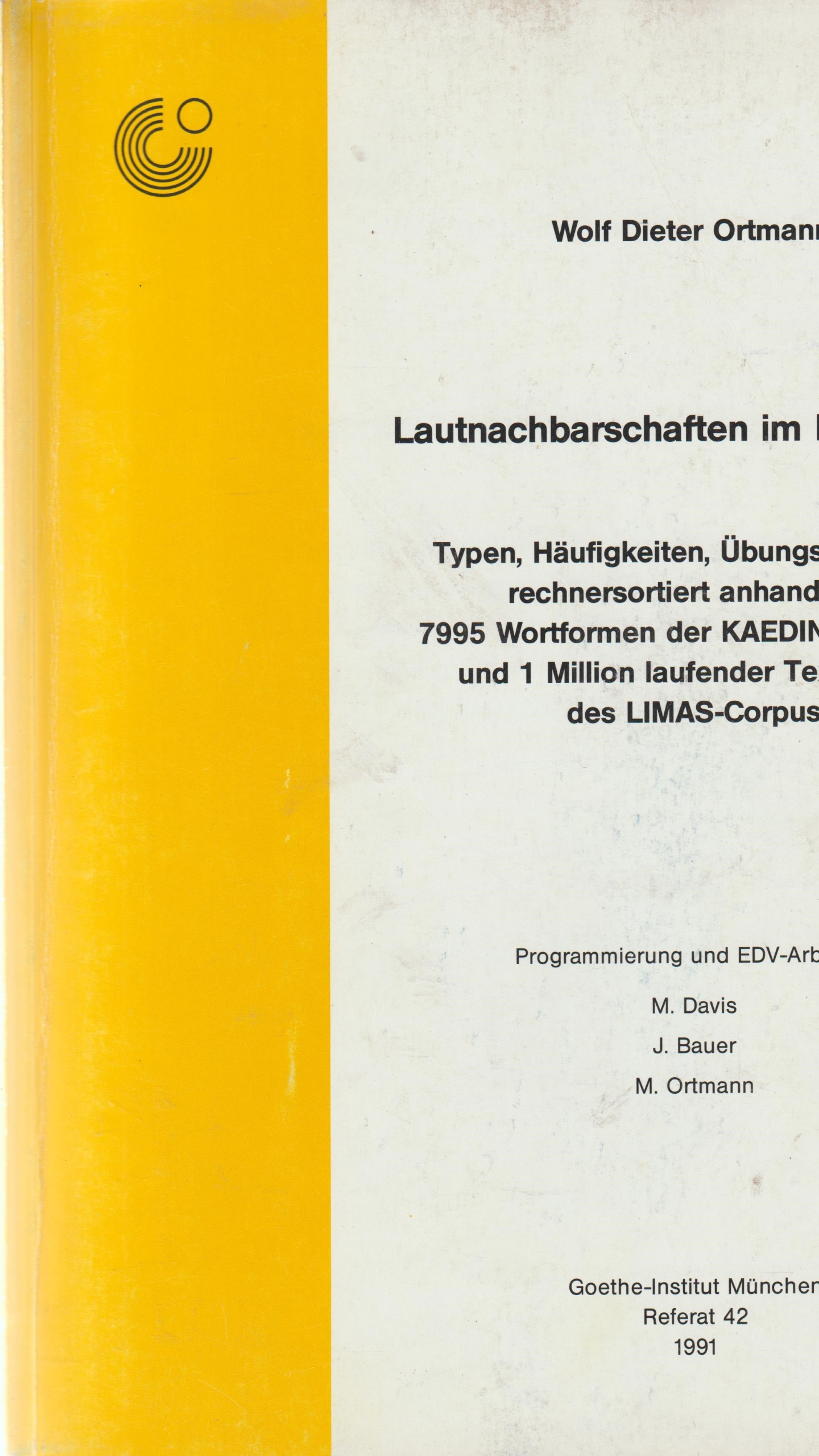 LAUTNACHBARSCHAFTEN IM DEUTSCHEN Wolf Dieter Ortmann